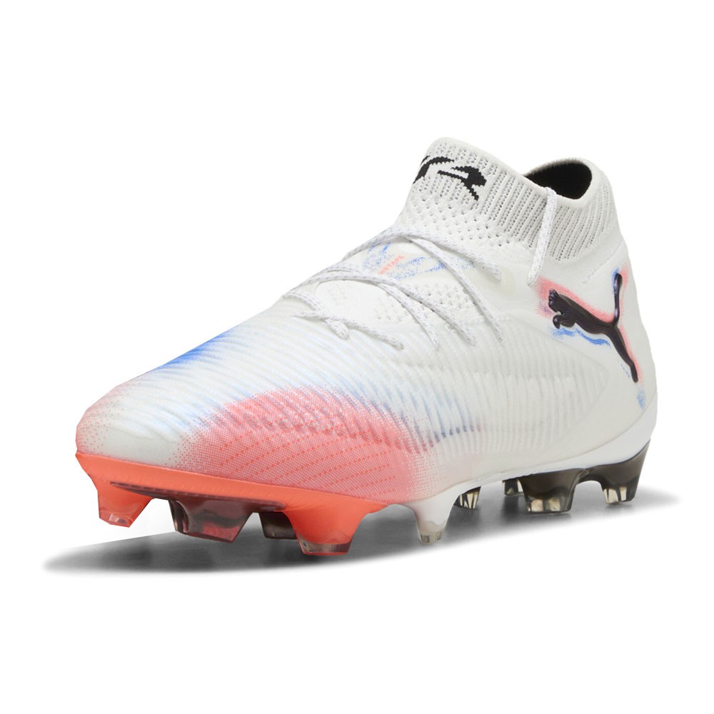 Future 8 Ultimate Firm Ground Product Details Width: Regular Fastener: Laces FLEXGILITY outsole for agile 360-degree movement Heel type: Flat Lining: Textile Color: Puma White/Puma Black/Glowing Red A boot that's built different, for women who make a difference. With Women's Fit 2.0, the FUTURE truly is female. A snugger forefoot, lower instep, and added arch support mean the boot adapts to your foot – not the other way around – so you can focus on one thing: unleashing your creativity. FUZIONFIT³ tech in the upper and the FLEXGILITY outsole for 360-degree agility let you move between the lines and create without limits. Additional Details Manufacturer Color: Puma White/Puma Black/Glowing Red Color: White Occasion: Casual Gender: Womens Age: Adult Brand: