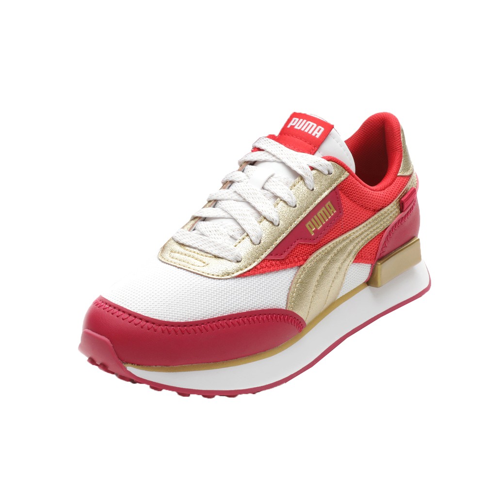 Future Rider Glitz Lace Up Sneakers (Little Kid-Big Kid) Product Details Textile upper Lace up closure IMEVA midsole with Rider Foam ensures cushioning. Shock-absorbing PUMA Federbein rubber outsole provides durable traction. Color: Puma White/Persian Red/Puma Team Gold It’s always ‘Game On’ with the PUMA Future Rider kicks. Designed to keep quick little feet comfy as they speed through their adventures, these sneakers are the perfect choice for future sporty stars. Bold, lightweight, and unbelievably comfortable, these kicks cushion your kids’ feet without weighing them down. Additional Details Manufacturer Color: Puma White/Persian Red/Puma Team Gold Color: Red Occasion: Casual Gender: Girls Age: Youth Brand: Puma