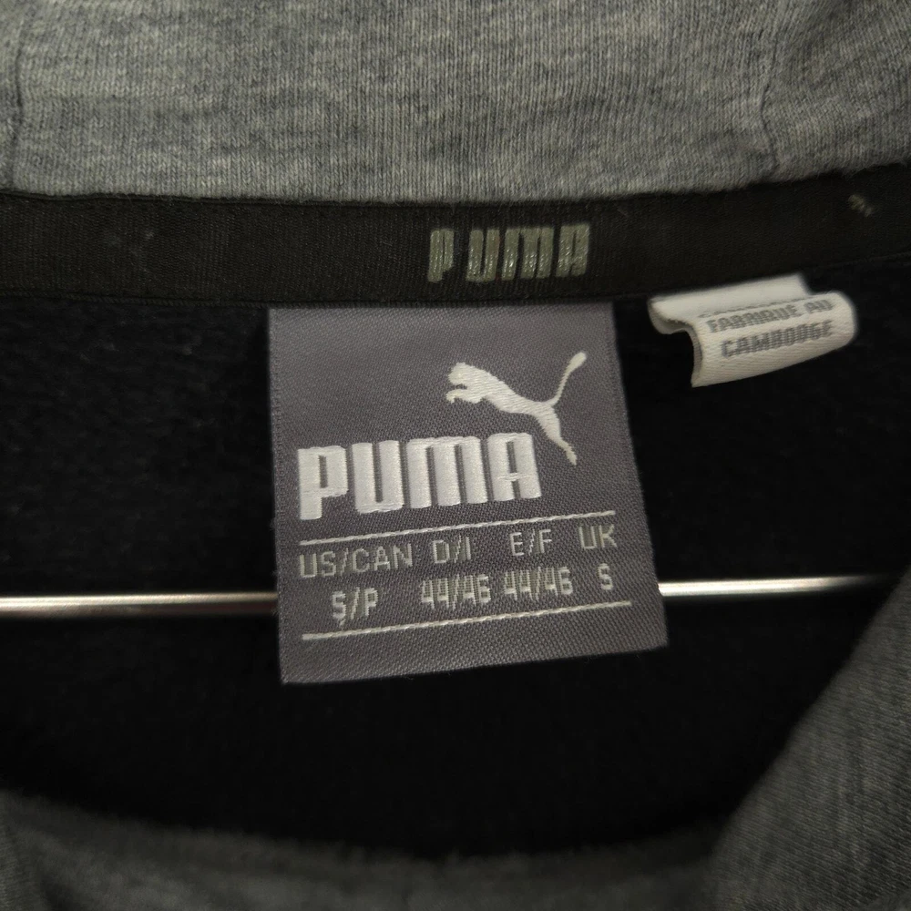 PUMA Hoodie Mens Small Gray Black Essential Big Logo Fleece Long Sleeve Pullover Great Condition: Item is in great condition with minimal signs of wear. No stains, tears, or holes. Pit to Pit: 21.5 inches Shoulder to Hem: 24.5 inches Brand: PUMA Size: S Color: Gray, Black Material: Cotton, Polyester Sold as pictured. Thanks for looking! -Measurements are approximate, please measure and check your favorite items at home to estimate fit -100% authenticity guaranteed -Items typically ship next business day