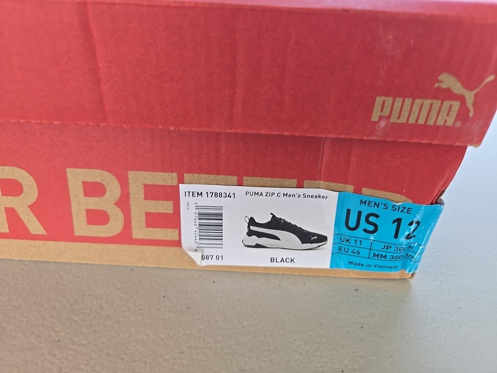 PUMA Men's Zip C Sneaker BLACK - Size 12. New With Box.