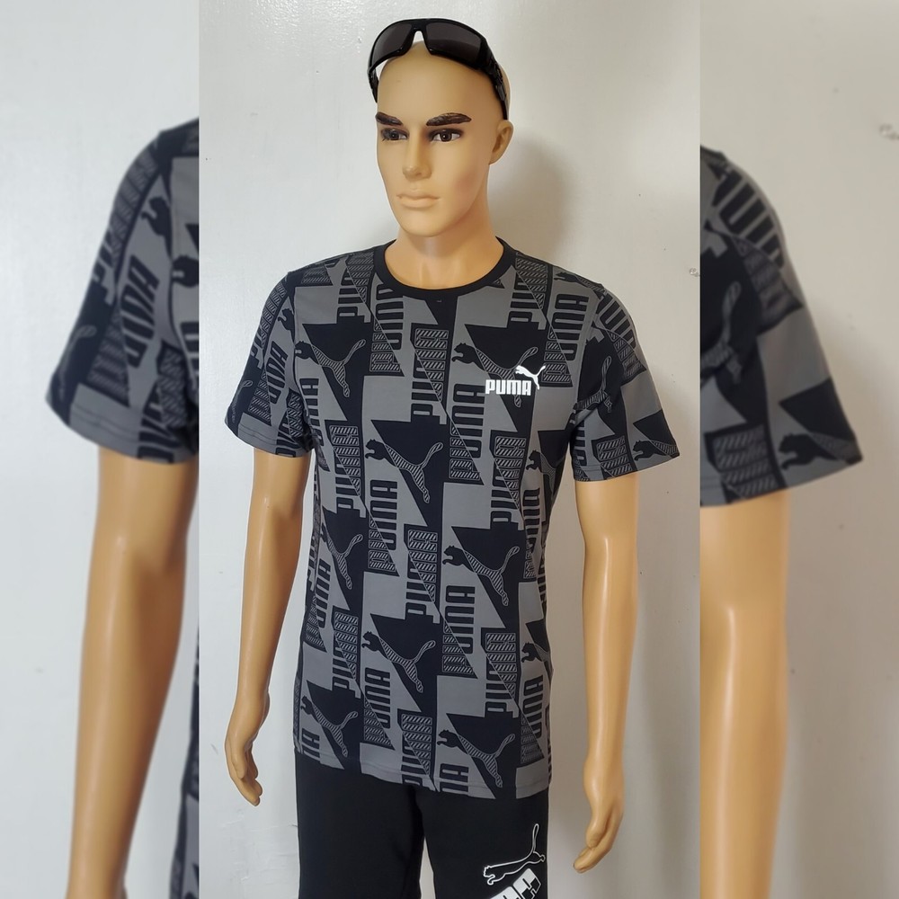 PUMA AUTHENTIC POWER AOP TEE MEN'S SIZE S BLACK.CONDITION IS NEW WITH TAGS . New Puma Collection 2022 Model Puma Power AOP •For all-in big cat fans, this tee proclaims your sportstyle loyalty loud and proud. A true stand-out from our Power collection, it showcases an on-trend tonal print that celebrates our classic logos in a mind-bending geometric constellation. A great go-to for those days that call for a little extra something. Cotton: Cotton in PUMA products comes from farms with a focus on sustainable farming such as water efficiency and soil health protection. - Regular fit - Ribbed crew neck - Graphic all-over print with PUMA Cat Logos and PUMA Wordmarks - PUMA No. 1 Logo rubber print on the left chest