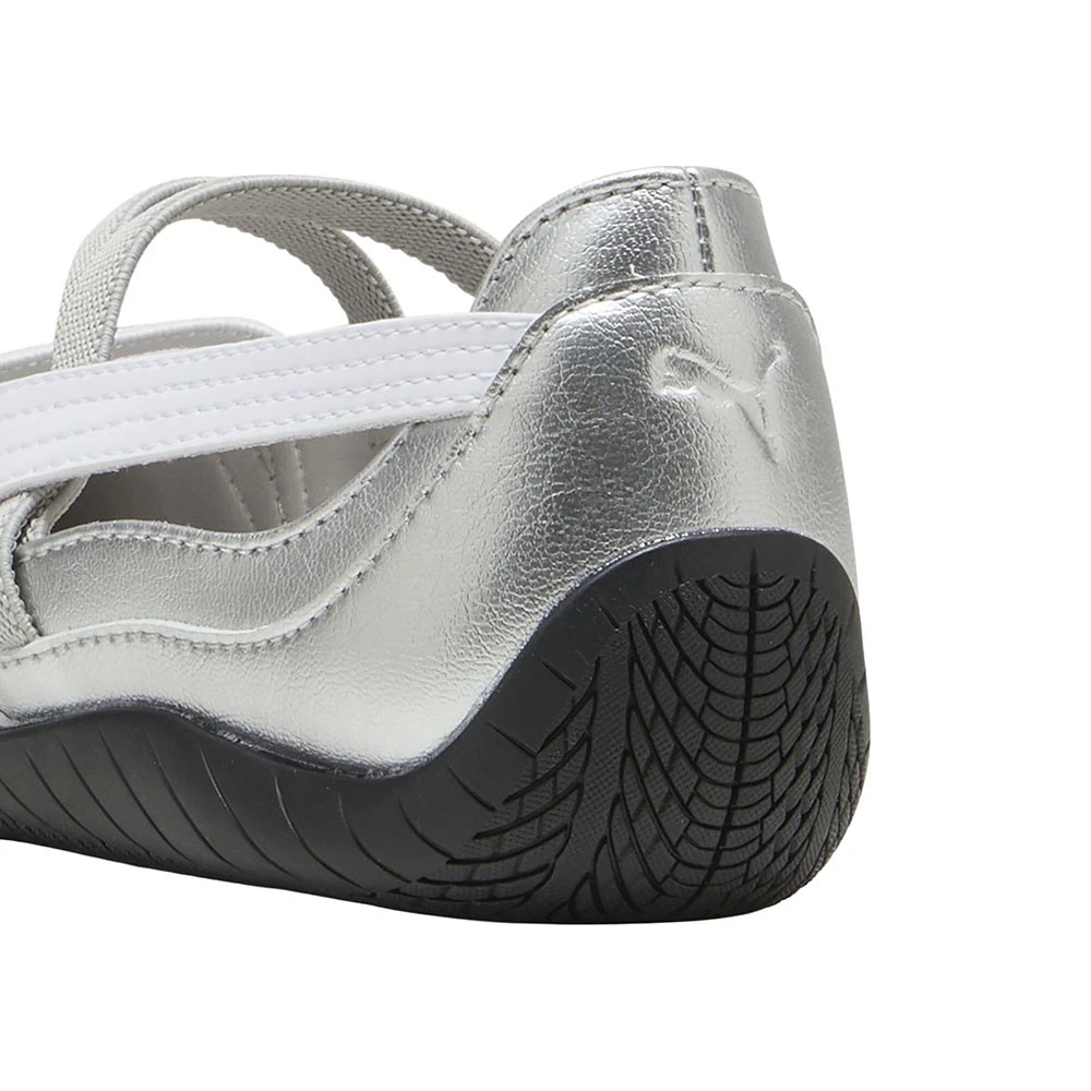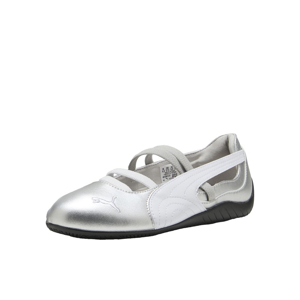 Speedcat Ballet Metallic Slip On Sneakers (Big Kid) Product Details Grey Metallic Embroidered cat on toe and heel Elastic bands on instep Rubber Outsole Color: Ash Gray-PUMA White-PUMA Black Merging the worlds of ballet and racing: the Speedcat Ballet, inspired by archive ballet flats and merging it wit the DNA of Speedcat. Own the low profile trend with the most iconic silhouette of PUMA's archive. Additional Details Manufacturer Color: Ash Gray-PUMA White-PUMA Black Color: Silver Occasion: Casual Gender: Girls Age: Youth Brand:
