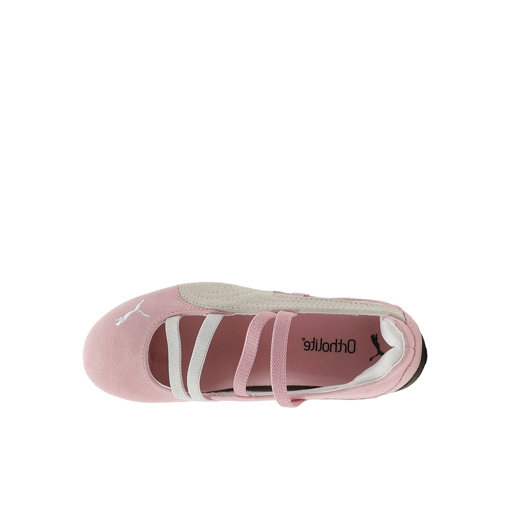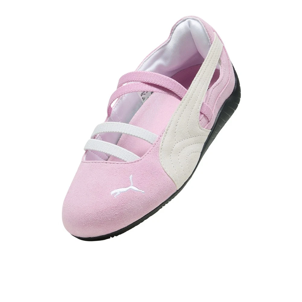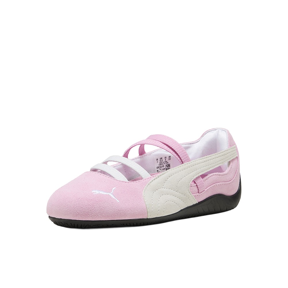 Speedcat Ballet Suede Flats (Big Kid) Product Details Width: Regular Toe Type: Rounded Fastener: Elasticated straps Heel type: Flat PUMA branding details Color: Pink Shimmer/Puma White No matter how you style it, Speedcat Ballet brings elegance and individuality to every fit. With ballet-inspired detailing and refined accents, this silhouette delivers a bold reinterpretation of an icon. Rooted in racing heritage yet designed for the street, it blends motorsport energy with graceful edge. Own the low-profile trend with this striking evolution—and find the pair that speaks to your style. Additional Details Manufacturer Color: Pink Shimmer/Puma White Color: Pink Occasion: Casual Gender: Girls Age: Youth Brand: