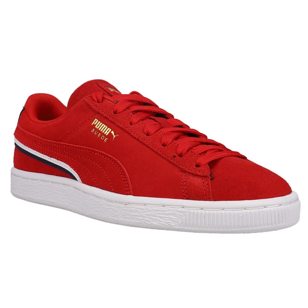 Suede Triplex Cherry Lace Up Sneakers (Big Kid) Product Details Suede upper Lace closure Mesh lining Rubber midsole Non marking rubber outsole Color: Barbados Cherry/Puma White/Peacoat Trends come and go, but some looks never go out of style. With a history dating back to the 1960s, the Suede is proven to stand the test of time. From Tommie Smith’s protest on the victory stand during the 1968 Olympic games to b-boy crews in NYC adopting the shoe in the 1980s, the Suede is more than just footwear – it’s an icon. This edition is a fresh take on a classic, with a triple-layer PUMA Formstrip and amplified design details. Additional Details Manufacturer Color: Barbados Cherry/Puma White/Peacoat Color: Red Occasion: Casual Gender: Boys Age: Youth Brand: Puma