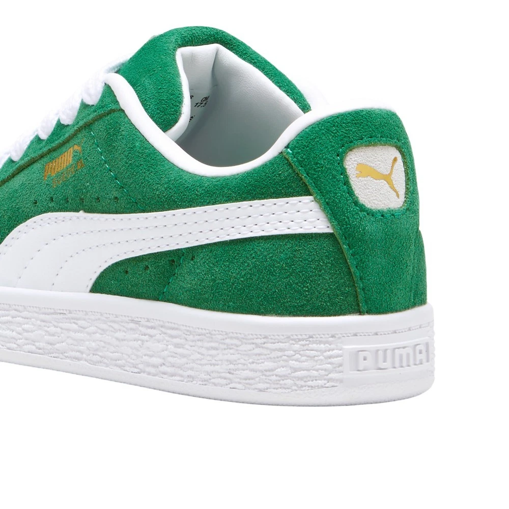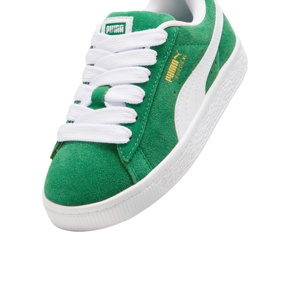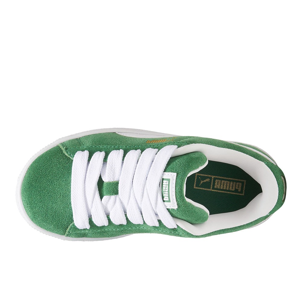 Suede XL Lace Up Sneakers (Little Kids) Product Details Suede upper Synthetic lining Debossed and gold foil printed PUMA XL branding on quarter Padded tongue and lining Rubber midsole Color: Archive Green-Puma White This fresh take on the classic Suede draws inspiration from PUMA’s heritage within breakdancing and its influence on modern streetwear. The Suede XL retains the Suede’s iconic DNA, but gives it a twist with an exaggerated padded collar and tongue, plus a chunkier sole. Additional Details Manufacturer Color: Archive Green-Puma White Color: Green Occasion: Casual Gender: Boys Age: Youth Brand: Puma