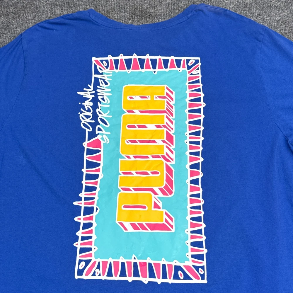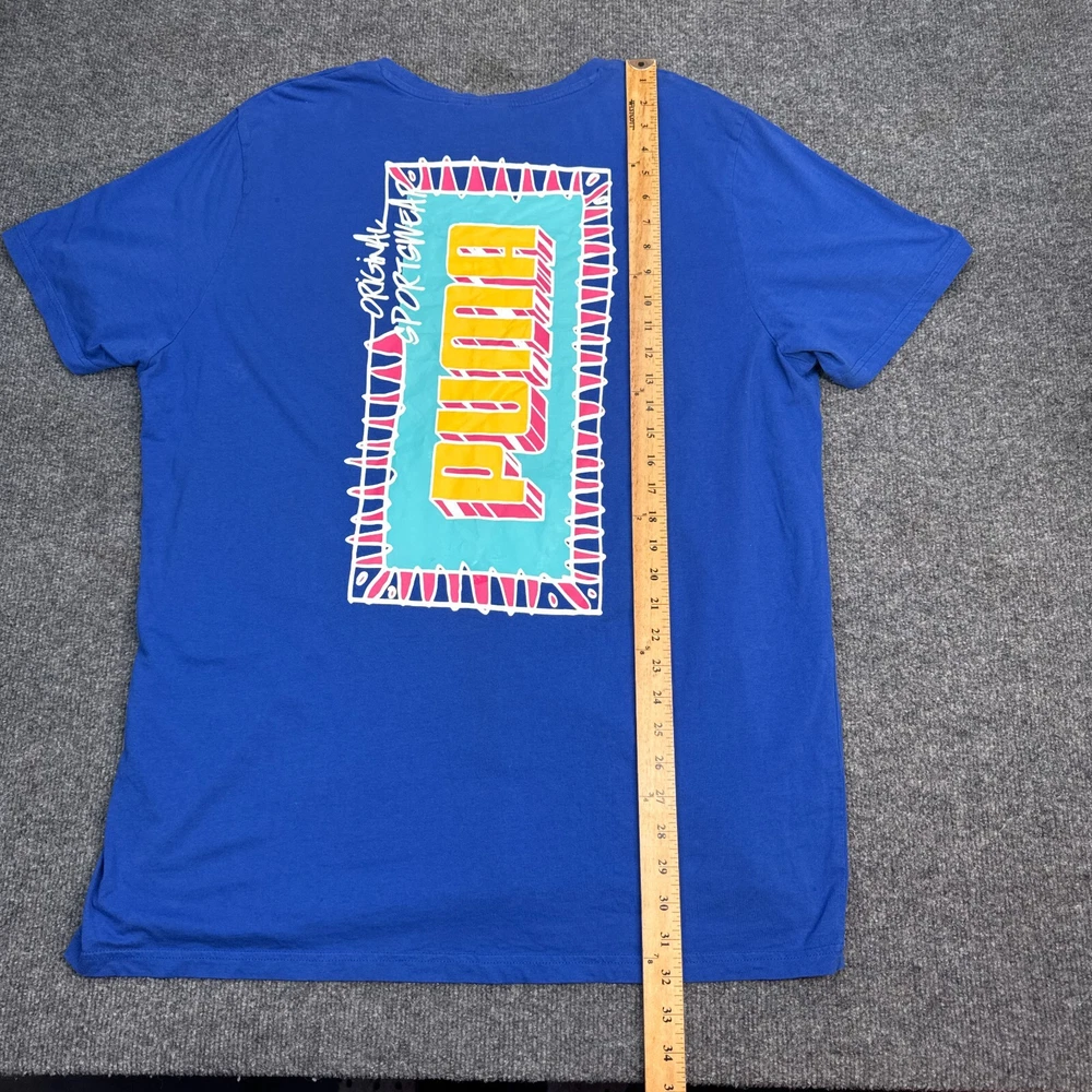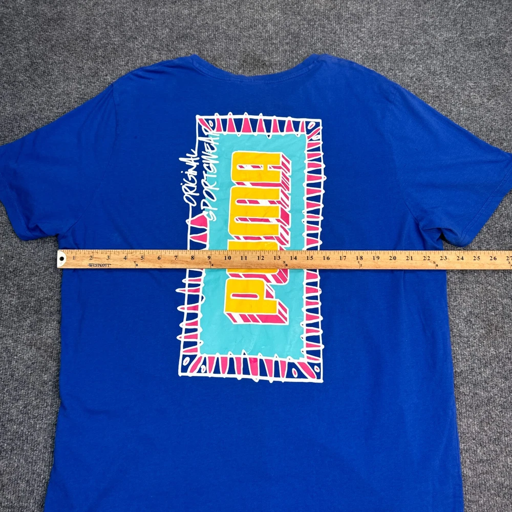 PUMA T Shirt Adult Size 2XL XXL Blue Double Sided Logo Graphic Tee Crew Neck