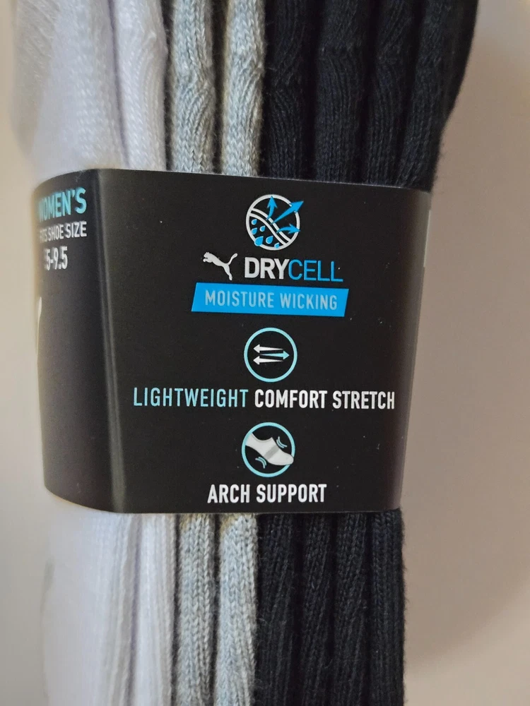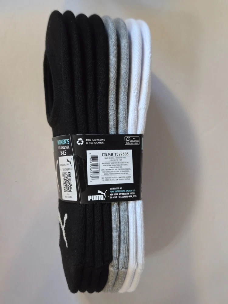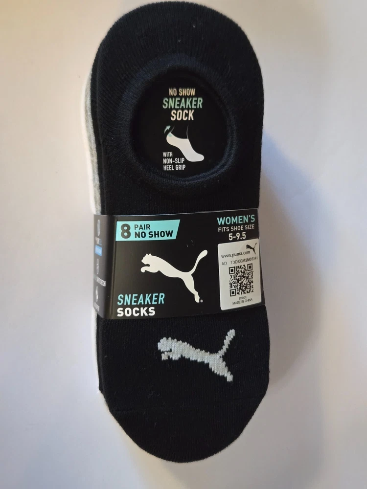 Elevate your sneaker game with these PUMA Women's No Show Sneaker Socks. This pack includes 8 pairs of socks in black, gray, and white colors that are perfect for all seasons. Made of a blend of polyester, spandex, and cotton, these socks are comfortable and durable, making them ideal for gym and training activities, as well as walking. The socks are designed to fit women's shoe size 5-9.5 and come in a solid pattern with no personalization. They are perfect for those who prefer a minimalist look. The no-show design ensures that they are perfect for wearing under sneakers without adding any bulk. Get your hands on these PUMA Women's No Show Sneaker Socks and step up your sneaker game!