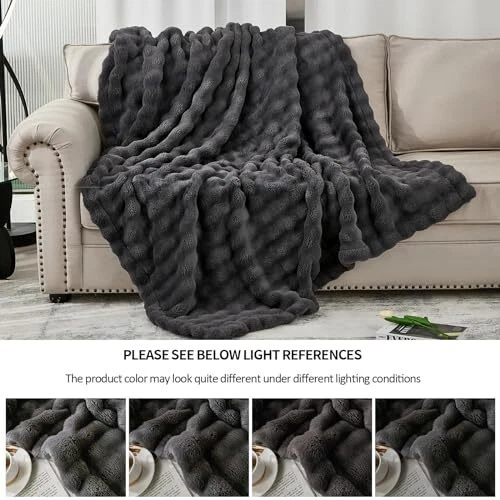 Return Policy Fast Delivery Trusted seller PUMEI Fleece Blanket - Throw Blanket for Bed 80"*90" Dark Gray, Luxury Bubble Fluffy Blanket Plush Queen Blanket Throw Blanket for Couch, Cozy Soft Warm Fuzzy Blanket large Blanket for All Season Use Product Description 【Double-Side Fluffy Fleece Blanket】 The super soft flannel fleece blanket is made from 380GSM 100% polyester fabric that is brushed on both sides for extra softness. Thick, but not too heavy, the lightweight throw blanket provides a breathable, cozy night's sleep. Tightly stitched edges make our blanket durable enough for long term use. 【Decorative Throws】This fleece throw with bubble textured features a luxury fuzzy look. The velvet touch of softness and double-faced shaggy look, it is designed to be solid but elegant which would easily coordinates or enhances existing bedding or home décor. 【Extra Large Blanket for Couch】This throw Compare with standard size ones, this throw blanket measured by 80x90 inch suits better for you to wrap up. With this larger size, you can bid farewell to any concerns about your toes being left exposed to the cold. Whether you're snuggling up on the couch or enjoying a movie night, this generously sized blanket will keep you cozy and content. 【Versatile】This soft blanket is perfect for various settings, whether you want to snuggle up in bed, unwind while watching TV on the sofa, or simply relax on the couch. The blanket's soft and soothing texture enhances the overall experience, making it a go-to choice whenever you're in the mood for some cosy snuggling. Additionally, its lightweight design allows for easy portability, making it an ideal companion for picnics, camping trips, or even long car rides. 【Machine Washable &Perfect Gift】Simply machine wash separately on gentle cycle with cold water, tumble dry at low temperature. It's a great present choice for your friends, colleagues and family for birthday, Christmas, Valentine's Day, Thanksgiving Day, wedding,etc. Shipping Returns Payment Shipping Shipping is FREE to all addresses other than APO/PO boxes in the lower 48 states. All our stock ships from US-based warehouses. Shipped via USPS or UPS (depending on location and package weight) Unless stated otherwise, all orders will ship within 24-72 hours of your payment being processed. Check our feedback to see the great reviews of FAST shipping we offer. Returns Seller does not accept returns Payment We currently accept payment via eBay managed payments only. Once payment is cleared, we will dispatch your shipment within 1-3 business days. Please refer to the "Shipping" tab for more information regarding shipping speed to your destination.