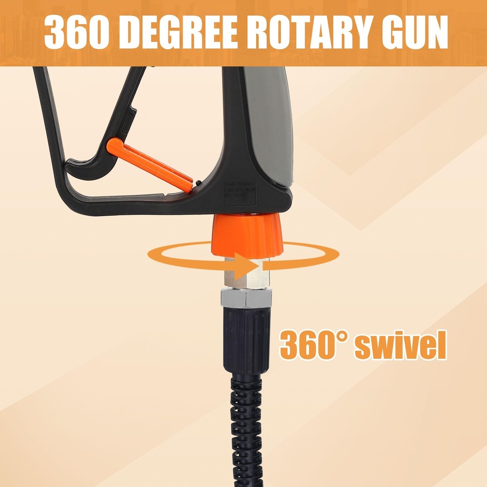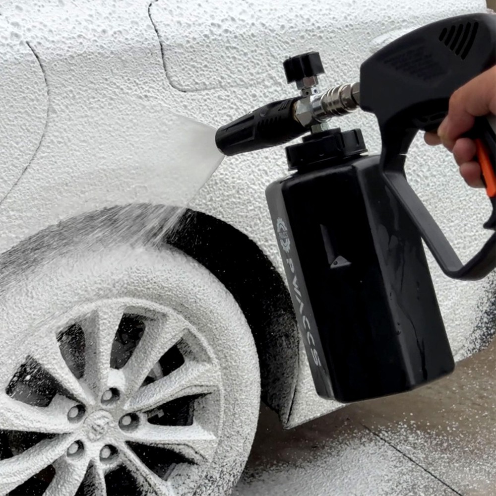 1. This pressure washer gun is a total game changer! The foam cannon produces the thickest, creamiest suds I've ever seen - my car looked like it got a professional detailing. Super easy to switch between nozzles and the swivel feature makes cleaning underneath vehicles a breeze. Definitely worth every penny for that showroom shine!