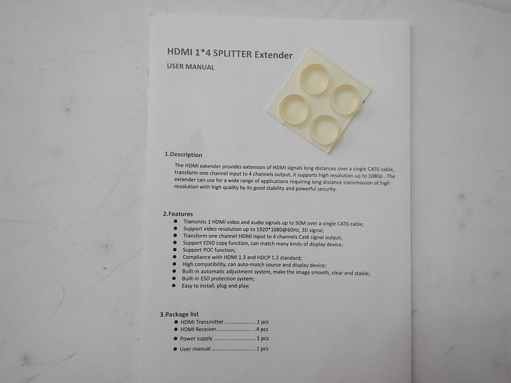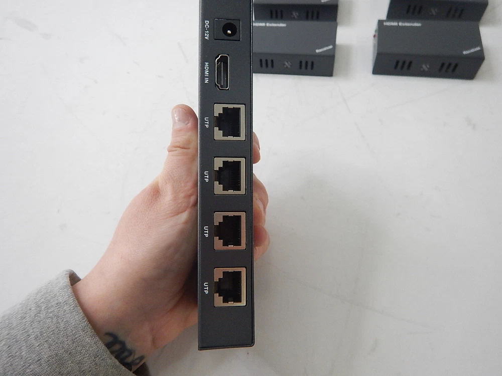 Maximum Resolution: 1080P Manufacturer: PWAYTEK Power Source: Corded Electric Manufacturer Part Number: HTS010X Voltage: 12V UPC: 779566117223 gtin13: 779566117223 Compatible Brand: Monitor Type: HDMI Extender/Splitter Seller Notes: “TESTED AND POWERS ON - Item appears unused.” Brand: PWAYTEK Model: HTS010X MPN: HTS010X Style: 1X4 Color: Black Connectivity: HDMI/RJ45 Compatible Model: Monitor
