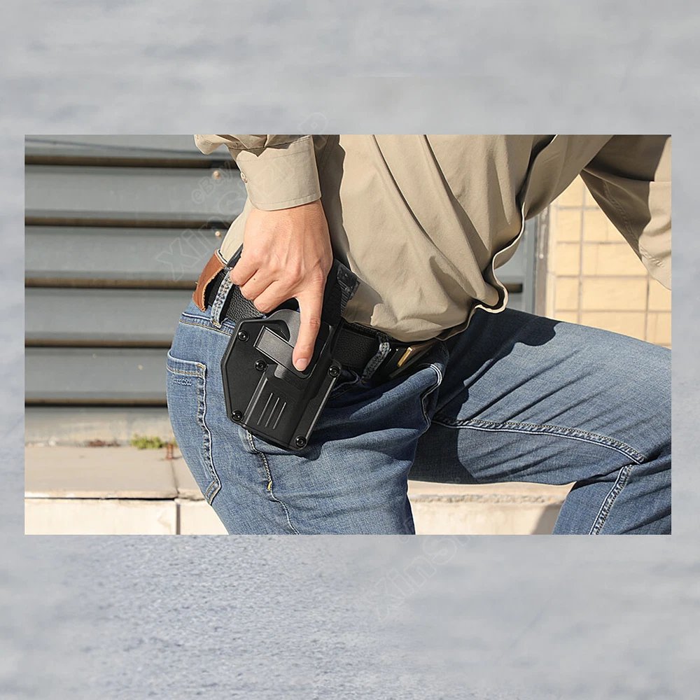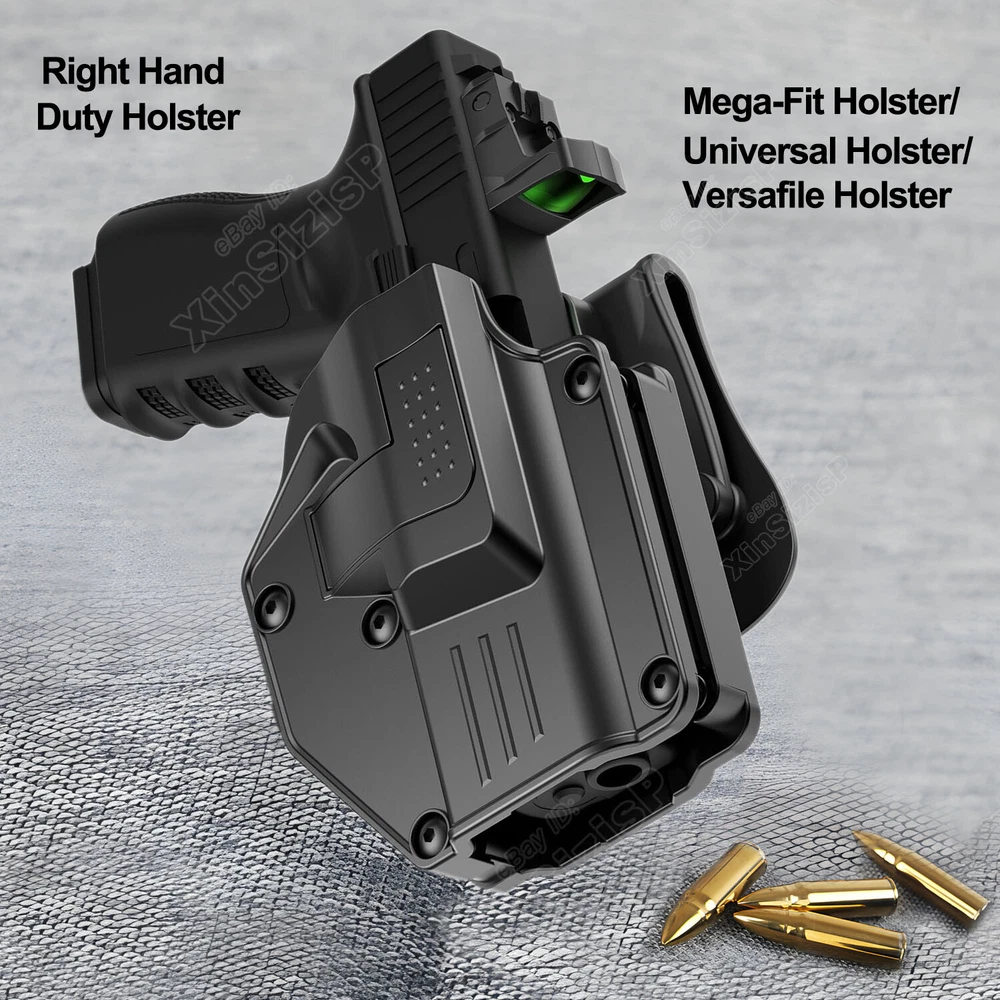 Mega-fit Holster / Versatile Holster / Universal Holster, Fits Most Popular Full Size and Compact Pistols, Fits Pistols with Red Dot, Fits Pistols with High Front Sight I tem D escription : Holster fit Beretta Beretta 92FS 9mm Luger Beretta 92X Performance 9mm Luger Beretta 92 9mm Luger Beretta 92X Centurion 9mm Luger Beretta 92S Full Size 9mm Luger Beretta 92G Elite LTT 9mm Luger Beretta M9 9mm Luger Beretta M9A1 9mm Luger Beretta M9A3 (without laser) 9mm Luger Beretta M9A4 9mm Luger Beretta PX4 Storm Full Size 9mm Luger Beretta PX4 Storm Compact 9mm Luger Beretta PX4 Storm Subcompact 9mm Luger Beretta APX Full Size 9mm Luger Beretta APX Centurion 9mm Luger Beretta APX Compact 9mm Luger Beretta APX Carry 9mm Luger Beretta APX A1 Carry 9mm Luger Beretta APX A1 Full Size 9mm Luger Beretta APX A1 Compact 9mm Luger .40 S&W Beretta 96A1 .40 S&W Beretta 96 Brigadier FS .40 S&W Beretta PX4 Storm Full Size .40 S&W Beretta PX4 Storm Compact .40 S&W Beretta Zigana C .40 S&W .45 ACP Beretta PX4 Storm Full Size .45 ACP Beretta PX4 Storm Compact .45 ACP Attention: While you have the holster, please follow these three steps to adjust its retention for a customized fit, as shown in the listing picture. Proper adjustment ensures your weapon is secure. Without it, the holster may not fit any firearm correctly. 1) After adjust the retention , Weapon Compatibility - Outside Waistband Tactical H olster Fit Holster perfect work with suppressor sights, and fit all the capacity 9mm,10mm, .40 cal, .45 cal a n d 22LR for the gun. Compatible-Beretta Fits Beretta 92, 92X Centurion, 92S Full Size . 92G ELITE LTT , 92A1, 92FS, PX4, PX4 STORM, APX, M9A1, M9A3 without laser, APX Centurion 9mm, APX Compact 9mm , APX A1, APX A1 compact , M9A1 Compatible-Bersa Fits Bersa Thunder 9 Pro XT Compatible-BRG Fits BRG USA BRG9 Elite 9mm Compatible-Browning Fits Hi-Power, Hi-Power 640, Hi-Power 3D, Browning Mark III Compatible-Canik Fits TP9 Elite Combat, TP9 SFX, TP9 SF,TP9 Elite-S, TP9SA Compatible-Caracal Fits Caracal EF, Caracal F, Caracal F Gen II Compatible-Colt Fits Colt 1911-3'', 1911-4'', 1911-5'', M1911 A1, M1911, Colt 1911 .45, Colt 1911 9mm Compatible-CYMA Fits CYMA CM127 Compatible-CZ Fits CZ P07, P09, 75 SP-01 Shadow, Shadow 2, P-10C, P-10 F, 75, 75B, 85 Compatible-FN Fits FNX-45, FN-509 Compatible-Girsan Fits Girsan MC28, Regard MC 9mm, MC28 SA 9mm, MC 14T, MC P35 PI LW, MC28 SA, Regard MC, 1911 MC Compatible-Glock Fits Glock 17 Gen(1,2, 3, 4, 5), Glock 19 Gen(1,2, 3, 4, 5), Glock 19X, Glock 21, 22 Gen(1,2, 3, 4, 5), 23 Gen(1,2, 3, 4, 5), 24, 26, 27, 30, 31, 32, 33, 34, 35, 36, 41, 42, 43, 43X, 43X, MOS, 44, 45, 47, 47 mos, 48. Compatible-Heckler & Koch Fits H&K USP and H&K USP Compact, SFP9,VP9 Compatible-Hi-Point Fits Hi-Point C9 Compatible-HS Fits HS-9 Compatible-ISSC Fits M22 Gen2 Compatible-IWI Fits Masada 9mm, Jericho 941 9mm Compatible-Jericho Fits Jericho 941 RS Compatible-Kahr Fits CW45 Compatible-Norinco Fits Norinco NP22 Compatible- Palmetto State Armory Fits PSA Dagger Compact 9mm, PSA Dagger Full Size S 9mm, PSA Dagger Full Size SX 9mm, PSA Dagger Micro 9mm, PSA 5.7 Rock Compatible-Para ordnance Fits Para ordnance P12-45 Compatible-PREXER Fits Wist 94 Compatible-Radom Fits VIS 100 Compatible-Rock Island Armory Fits Baby Rock 380, BBR 3.10 45ACP, BBR Standard 380ACP, M200, M206, 1911 , SA 1911 Compatible-Ruger Fits Ruger MAX-9, Security-9, Security 9 Compact/ Pro/ Standard , Security 380, Ruger-5.7, Ruger American, SR1911, SR22, RSR9, SR9C, SR40, SR45, PRESCOTT 57, LC9 , Compatible- SCCY Fits CPX-1 (Gen 1 2 3), CPX-2 (Gen 1 2 3) , CPX-3 (Gen 1 2 3) , DVG-1, CPX-1RD / CPX-1RD Compatible- Sarsilmaz Fits AR-24 , AR-24K, B6, B6C, B6C7.65, B6C-LR, B6C-S, CM9, K-12 Sport, K-12 Sport X, K11, K2 45, K2 45C, Kilinc 2000 Light, Kilinc 2000 Mega, P8 L, P8S, SAR 9, SAR 9 C, SAR 9 METE Compatible-Shadow Systems Fits CR920 Elite, DR920, DR920 FS, DR920P, MR920 Compatible-Sig Sauer Fits Sig Sauer P365, P365 BB , P365X / XL/ SAS/ X Macro, P220, P225, P226, P228, P238, Sig Pro 2022 (Germany or USA version), SP2022 SAR, P938, P320, P229, P250, P320 Compact, P320 with Lima Laser Compatible-Smith & Wesson Fits Smith & Wesson M&P 9MM, M&P M2.0 9MM, M&P 40, M&P 45 ACP, M&P 40, M&P .40 C, M&P .45, M&P 9 M2.0, M&P Shield 9mm, 40, 45, M&P Compact 9, 40, SW9, SW9V, SD9 VE, SD40 VE, SD40, M&P 40 M2.0, 380 SHIELD EZ , 9 SHIELD EZ , M&P9, 9 SHIELD ,CSX, S&W 1911 Compatible-Springfield Fits Springfield XD-9, XD-40, XD-45, XD-S, XD-S .45 ACP, XDM-9, XDM-40, XDM-45 ACP, XDE-9, HELLCAT, HELLCAT PRO, Hellcat OSP / RDP 9mm , XDS-45, XDS-9, XDM , XDM elite 10mm , 1911 SA , 1911 Compatible-Steyr Fits Steyr Arms C9-A1, Arms C9-A2, Arms C9-A2 MF Compatible-Stoeger Fits STR-9 Compatible-Tara Fits TM9 Compatible-Taurus Fits Taurus Millennium, Taurus 100, Taurus 92, PT111 G2, G2C, G3, PT24/7, GX4, PT111, PT132, PT138, PT140, PT145, PT745, PT938, T800 series and Pro version, PT809, PT709, PT24/7, PT24/7-OSS, PT809C, PT840C, G3, TH9, Taurus 1911, Taurus PT 92 AF, TX22 compact, TX22 22LR Compatible- Tisas Zigana Fits PX-9, Tisas zig m1911 duty .45, Tisas M1911 .45 Compatible-Walther Fits Walther P99 QA, PPQ(M1 M2 M3), P88 9mm, PPQ Compatible-Zastava Fits EZ9, EZ40 ( Without embedded chassis, and no flashlight style ) 2) Holster with paddle - Push side buttons to achieve the fast opening and closing, unique design allows for belt carrying or vest carrying, perfectly used by duty holsters, uniformed law enforcement officers, security personnel, military personnel, private persons, and shooting sports holsters. And it fits closer to the body which can achieve better concealment under clothes. 3) Secure Level II Retention - Auto-locking system restrain pistol in OWB holster to ensure ultimate safety, activate the release by pressing the button with the index finger to achieve gun access . 4) Adjustable Carry Angle - Easily set Holster 360 degrees to your desire position with Allen key, compatible belt width up to 2 inches . 5) Tough, Durable Materia