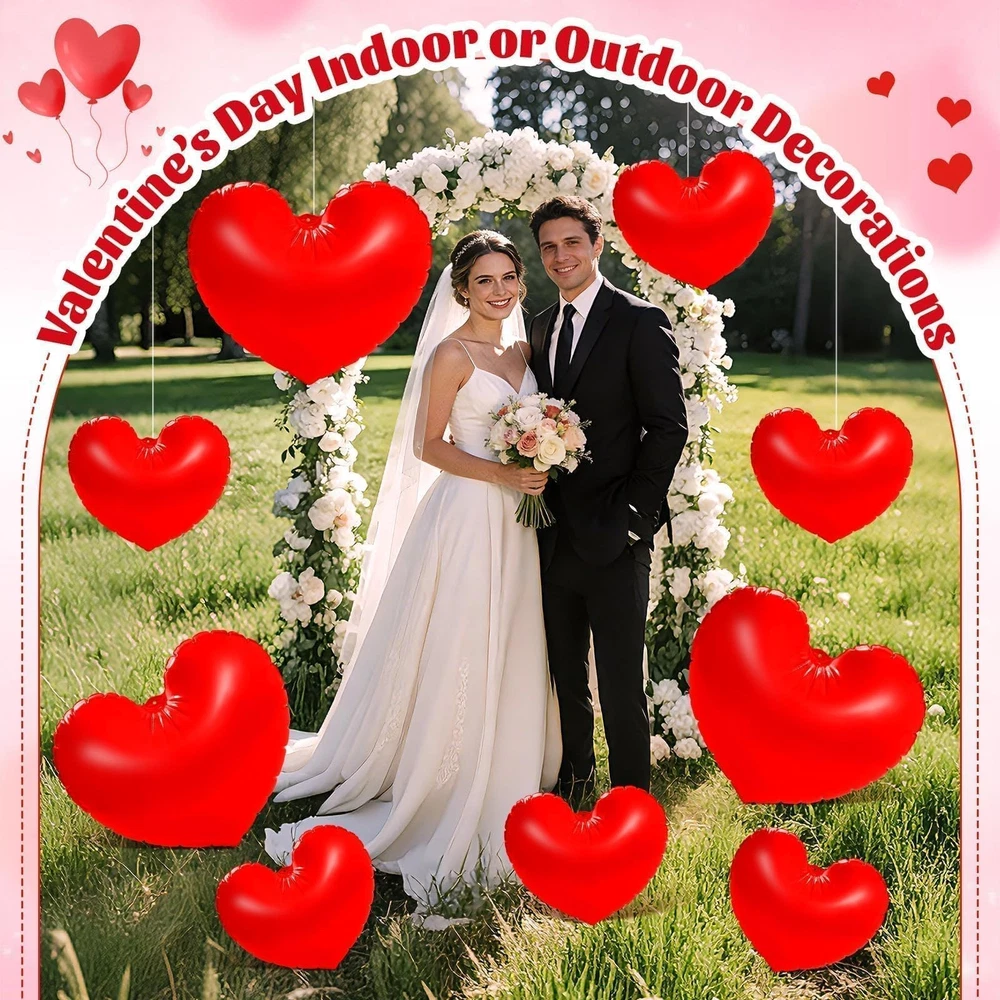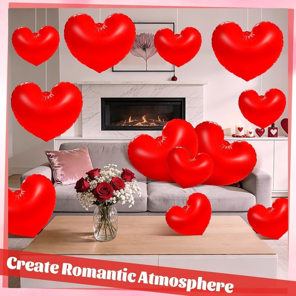 PYURTHITY 12 Pcs 16'' and 24'' Giant Valentine's Day Inflatable Heart red Description Features:Easy Setup:Simply inflate these Valentine's Day heart yard decorations using an air pump (not included) for quick decoration and party preparation.Hang these heart shaped inflatable balloons in your home, front door, porch, or windows to welcome guests with a warm and inviting ambiance.Specifications:Material: PVCColor: redSize: 16 inches, 24 inchesPackage include:12 x Valentine's Day inflatable heart decorationsNotes:Manual measurement, please allow slight errors on size.The color may exist a slight difference due to different screen displays. Features: Plenty of Love: The package includes 12 pieces Valentine's Day inflatable heart decorations and 1 piece 16.4-foot/5-meter long rope, providing ample quantity to meet all your decorating needs. Share these love-filled blow up heart with friends and loved ones on this special day to spread the love Eye Catching Sizes: Our giant Valentine's Day hanging hearts for outdoor come in 16-inch and 24-inch sizes, with 6 of each size included. The large Valentine's Day heart decorations make a bold statement when hung on trees, walls, or entrances, effortlessly adding romantic ambiance to your space Quality Material: Crafted from quality PVC, these inflatable Valentine's Day decorations are durable and feature a smooth, burr-free surface. Waterproof and abrasion-resistant, they resist punctures and fading. Easy to inflate, they offer long-lasting use to accompany you through multiple holidays Valentine's Day Design: These heart shaped decorative ornaments feature vibrant red hues and classic heart shapes for both beauty and romance. Their large size and eye-catching colors elevate Valentine's Day ambiance in any indoor or outdoor space, making your decor more captivating Versatile Use: Our large hanging hearts are ideal for Valentine's Day celebrations and also add sparkle to anniversaries, weddings, costume parties, bridal showers, baby showers, birthday parties, and more. They blend seamlessly into any love-filled celebration, creating a romantic ambiance in homes, patios, gardens, or lawns Product Details: Handling We will ship all orders within 1 business day of payment. Delivery We Do Not Ship Outside of the Continental US. Return Policy All items qualify for returns within 30 days of receipt. Buyer is responsible for return shipping on any item that is not damaged. Feedback We take our reputation seriously, we buy and sell online, so we understand the value of trust. If you are unsatisfied with your order, please contact us and we will work with you to resolve it to your satisfaction.