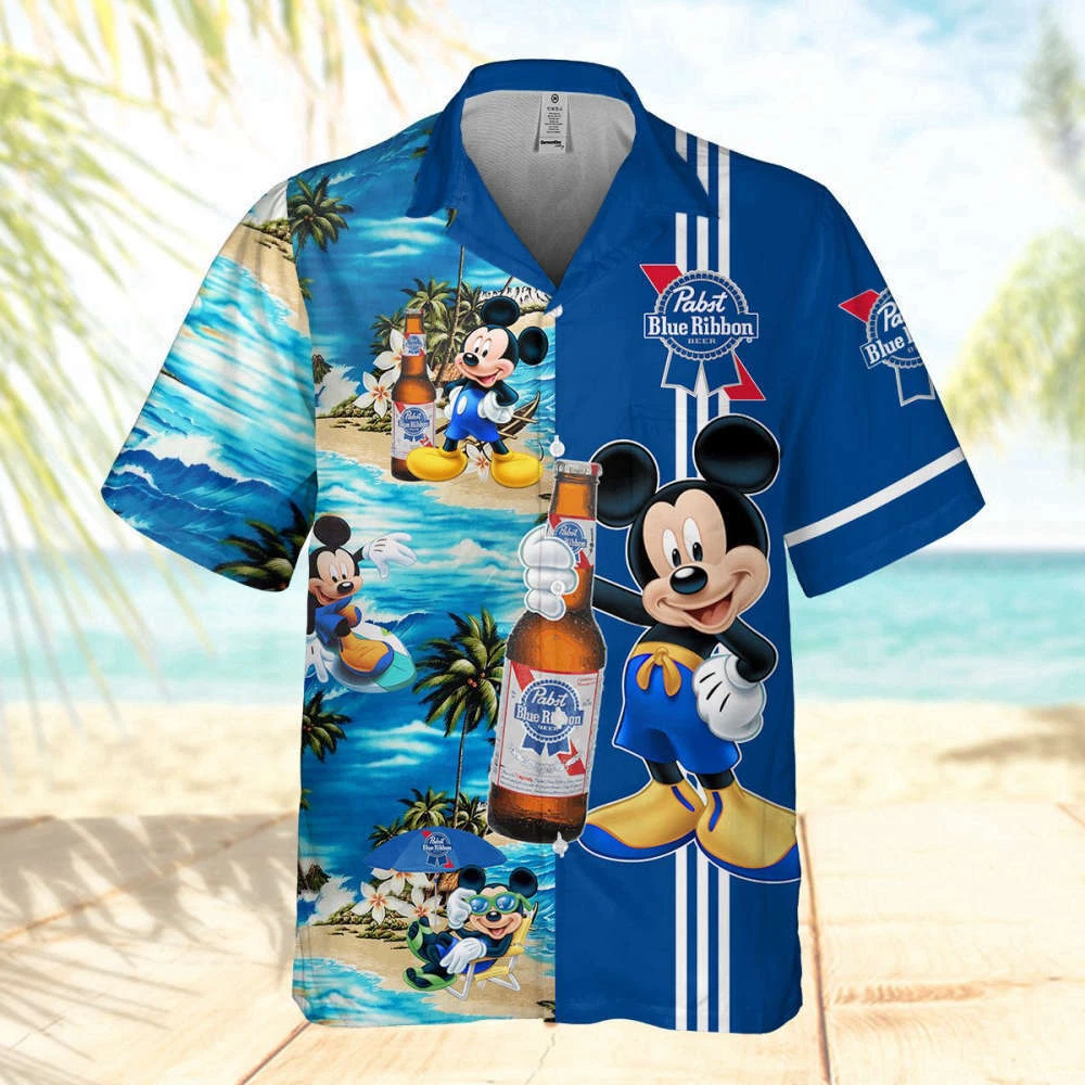 PabStar Trek Blue Ribbon Mickey Mouse 3D Aloha Summer Beach Hawaiian Shirt