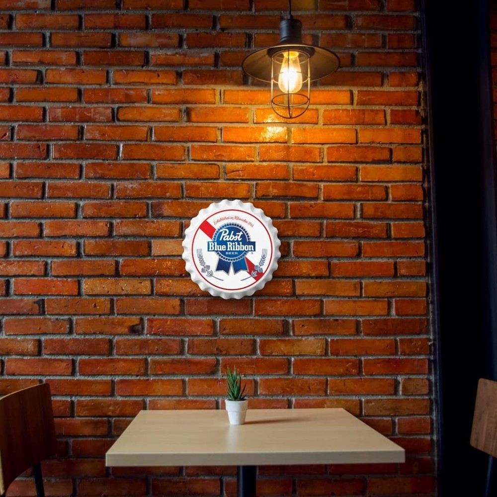 Aluminum Sign Details: Size is 18" diameter round x 2.5" deep. Crafted from aluminum and manufactured with pre-drilled holes for easy hanging, this makes them convenient for display on walls, doors, fences, or other surfaces. Versatile and Eco-Friendly: Aluminum signs can be used for various purposes, including home decor, bar decorations, garage or man cave adornments, restaurant themes, and as gifts for vintage enthusiasts. Aluminum is a recyclable material, making aluminum signs an environmentally friendly option for sustainable signage solutions. Professional Appearance and High-quality Graphics: Printed using UV resistant digital printing which ensures high-quality graphics, vibrant colors, and sharp images. Aluminum signs have a clean and professional appearance that is suitable for both commercial and residential settings. Indoor and Outdoor Use: Aluminum is highly resistant to rust, corrosion, and weather elements, making it suitable for long-term outdoor use. These signs can withstand harsh weather conditions, including rain, sunlight, and extreme temperatures. Made in America: Proudly manufactured in the USA. Family owned and operated since 1987.