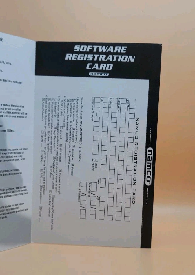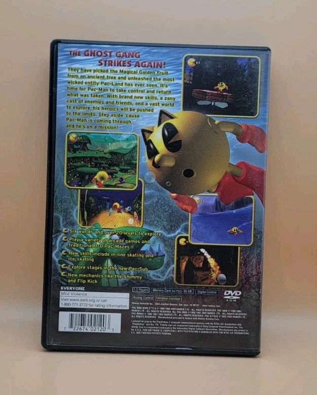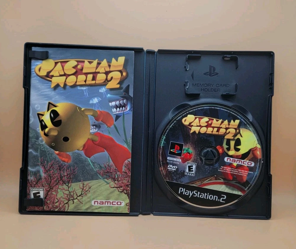 The product is "Pac-Man World 2" for the Sony PlayStation 2, complete in box with the registration card included. It has been tested and confirmed to be in working condition. The game is published by NAMCO and carries an E-Everyone rating, making it suitable for players of all ages. Perfect for fans of classic arcade games, this title offers an enjoyable gaming experience on the PlayStation 2 platform.
