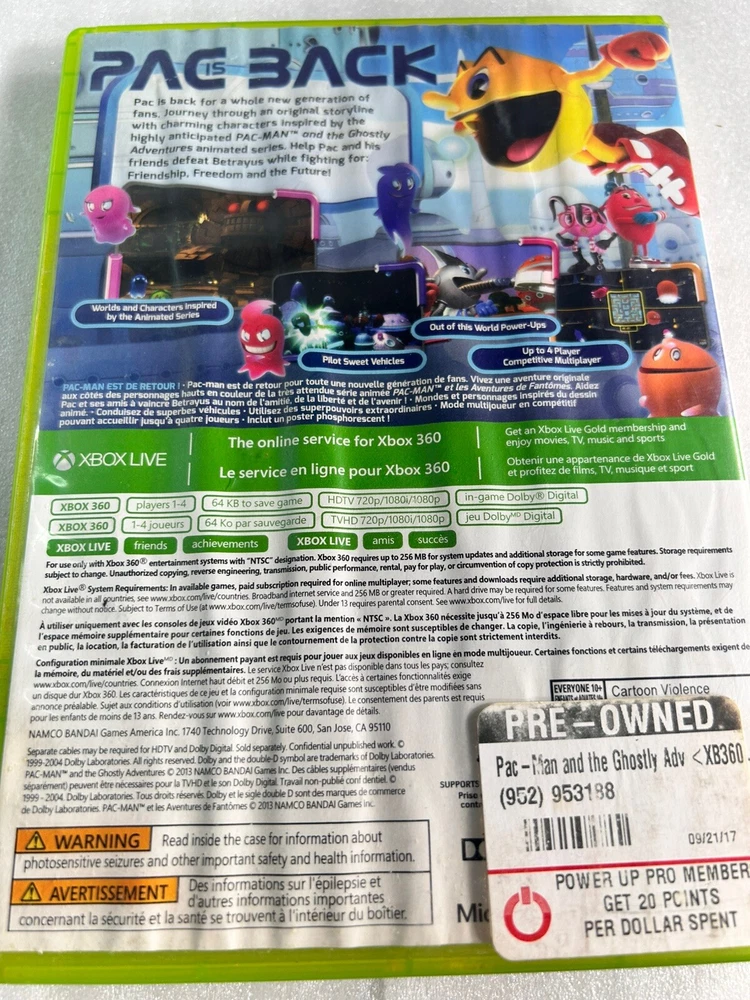 Pac-Man and the Ghostly Adventures for Xbox 360 is an action-adventure game released in 2013 by BANDAI NAMCO Entertainment. It features multiplayer gameplay and is rated E10+. Join Pac-Man in a fun-filled adventure to battle ghosts in this exciting game designed for the Microsoft Xbox 360 platform.