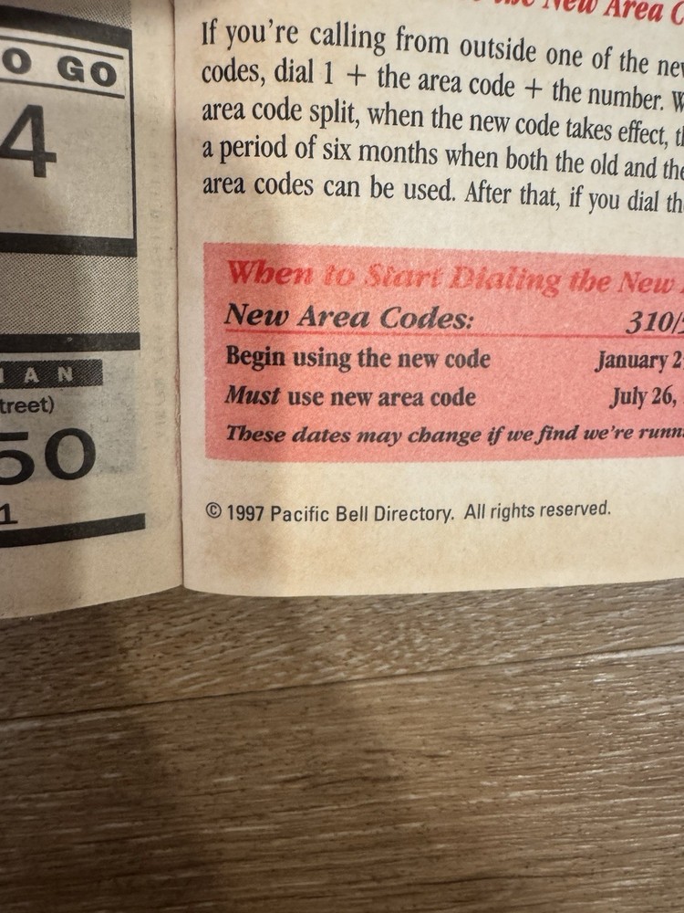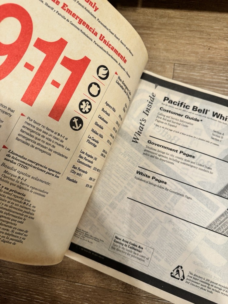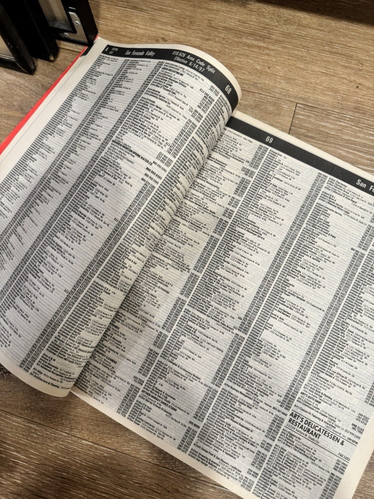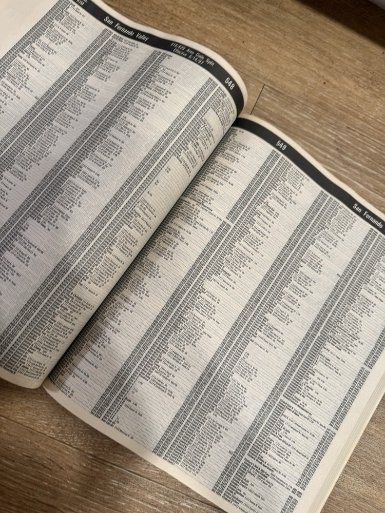 Original Pacific Bell White Pages directory for San Fernando Valley (Area Code 818, 1997 edition), including Glendale, Burbank and surrounding areas. Full residential listings with names, addresses, and phone numbers from the pre-internet era. Condition is used – cover has wear, creases, and some discoloration from age, pages are intact and readable. A great vintage piece for collectors, decor, or film/photo props. Sold as-is, no returns.