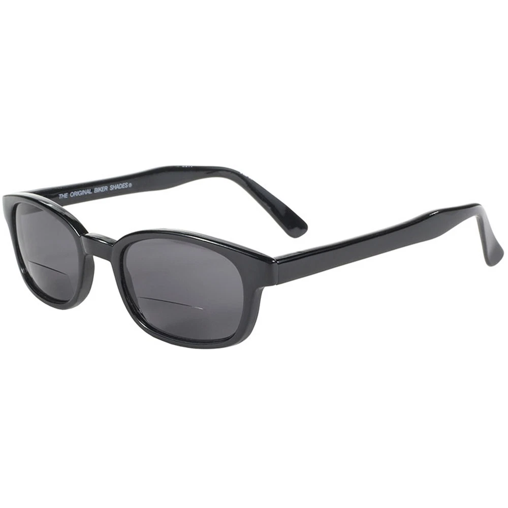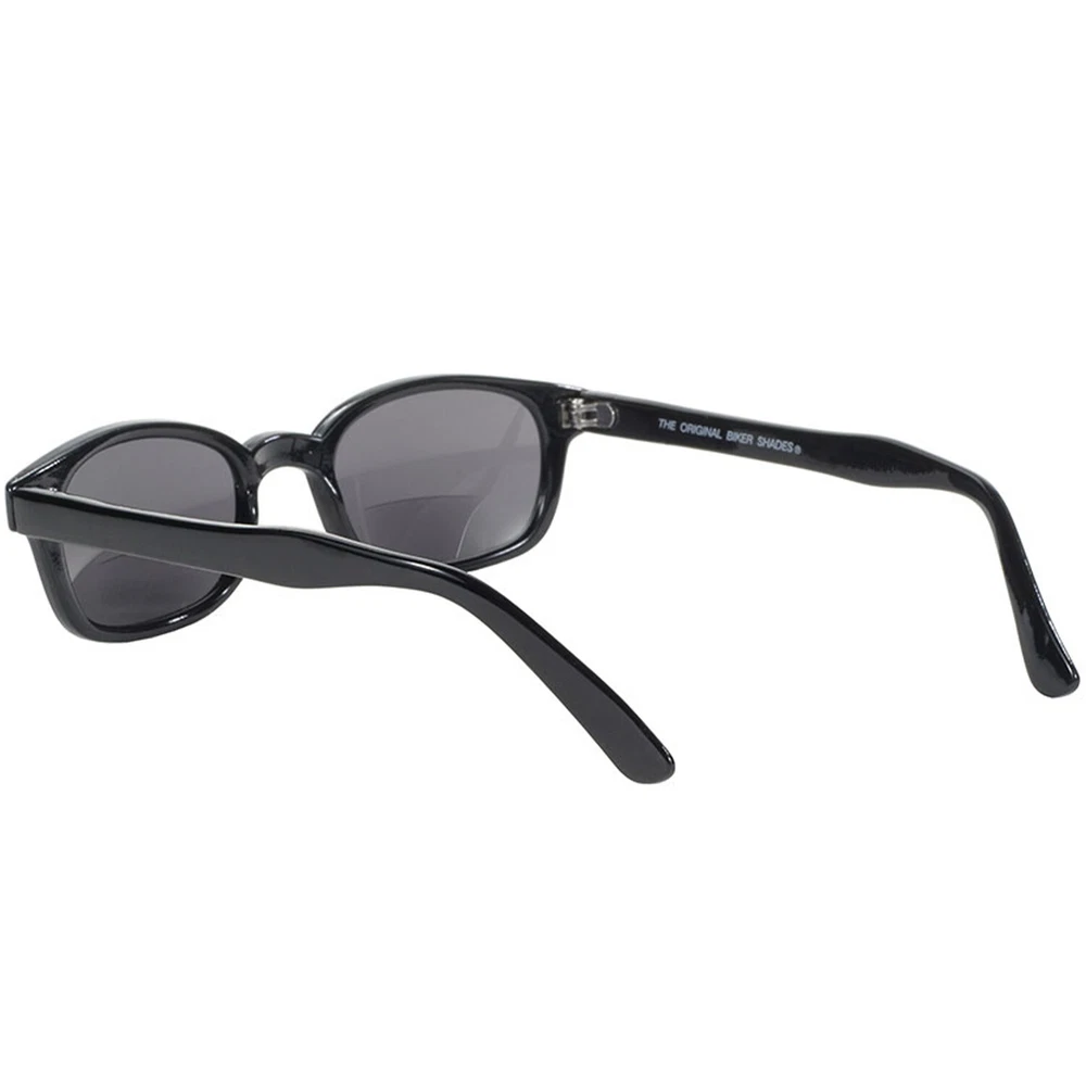 Pacific Coast X-KDs Bifocal Readerz Sunglasses Black Frame Smoke 2.0+ Lenses Need a little help with reading the fine print or your gauges? Finally you can wear a reading glass and look cool at the same time! Our X-KDs Bifocal Readerz elevate our Original KDs in two very important ways. These frames are 20% bigger than the original frames *and* provide bifocal magnification at the lower third of the lens, allowing you to read the fine print when you need to without sacrificing your cool look. So whether you've been wearing these glasses for decades or you're more than a little motivated by the Sons of Anarchy, you either know are will soon learn that KD's are so popular because in addition to their cool look, they keep the wind out of your eyes by fitting tightly on the temple and the nose bridge. Made for men and women alike, you're sure to love the style, performance, and fit. KD's fit comfortably under a helmet and feature a sturdy frame with wire-reinforcement at the temple and boast shatterproof polycarbonate impact-resistant UV400 lenses that exceed ANSI Z87.1 standards. Our bifocal readerz are available in clear and smoke lenses with magnification strengths of 1.5, 1.75, 2.0, 2.25, and 2.5. When you purchase this pair, you'll receive black frames, smoke lenses, and bifocal magnification of 2.0. Product Details Brand Pacific Coast Sunglasses Color Smoke Size Adult Manufacturer Pacific Coast Sunglasses Product Type Sunglasses Mpn 18200PCS KD's are the #1 Bestselling Biker Sunglasses in the world and have been wildly popular since the 1950s, offering a timeless design thats always in style; glasses feature official KDs medallion to ensure authenticity While the standard KDs are particularly small and thin to accommodate fitting underneath motorcycle helmets, these X-KDs are 20% larger due to popular demand for accommodating larger heads and greater coverage X-KD bifocal readers elevate these glasses even more by providing magnification on the lower third of the lens, allowing you to read the fine print while maintaining your cool look; glasses are available in clear and smoke lenses with magnification strengths of 1.5, 1.75, 2.0, 2.25, and 2.7 Wire-reinforced temples allow for greater durability and adjustability while sleek arms fit comfortably under a helmet and keep the wind out of your eyes thanks to a tight but comfortable fit Shatterproof polycarbonate impact-resistant UV400 lenses exceed ANSI Z87.1 protection standards while nickel alloy hinges provide maximum durability and strength Check out my other items. - Powered by
