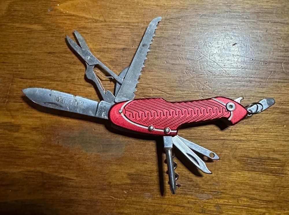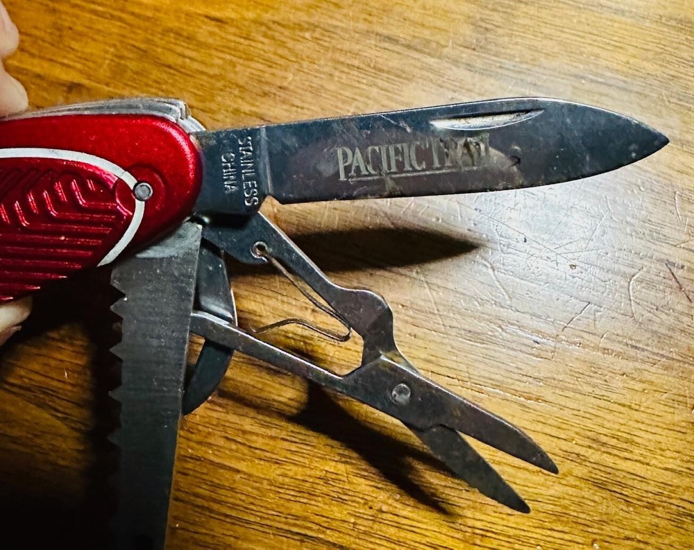 First bid wins this Pacific Trail Red Utility Pocket Knife Camping Tool Box Fishing #A55 . Has 9 Tool or Knife items. (Location bag #A55) Check pictures. Please check out others being listed daily. Any questions please ask. Thanks