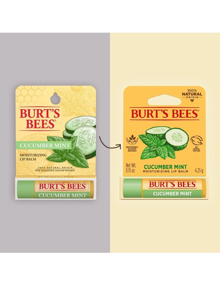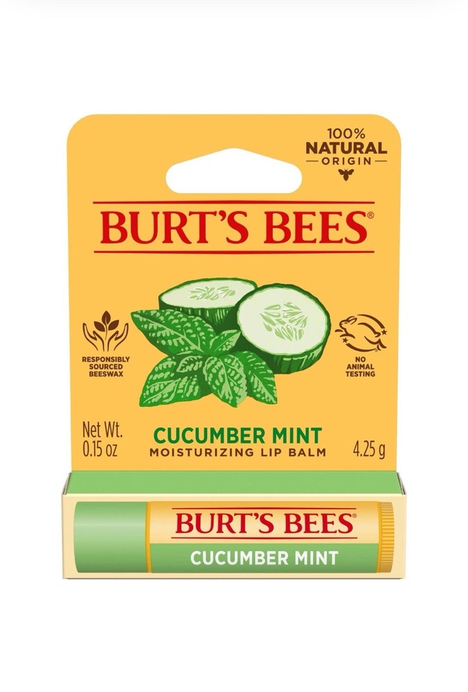 Pack 4 - Burt's Bees Cucumber Mint Moisturizing Lip Balm.