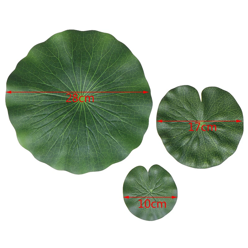 Features: 1.PREMIUM QUALITY - Our lifelike artificial leaves are made of good quality foam, with excellent color fastness performance. The color will stay vivid and won't fade in the water. These are also a great fit for our artificial water lilies to decorate your ponds. 2.REALISTIC LOOKING - With lifelike foamy material and different sizes, the lotus leaves are beautiful and natural looking. They will add a perfect and unique vibe to your pond! 3.WIDELY USED - Easily floating on the water, the lily pads are great decorations for water features, fountain ponds and aquarium fish tanks. Also, they are perfect for the decor of home and special events like weddings or parties. It is a great idea to wow all your guests! Specification: 1,100% new and high quality 2,material:foam 3,color:green 4,size:The diameters are: 10 cm, 17 cm, 28 cm Package include:9 pcs / 1 set Note: There is 2-3% difference according to manual measurement. Please check the measurement chart carefully before you buy the item. Please note that slight color difference should be acceptable due to the light and screen. Preview: