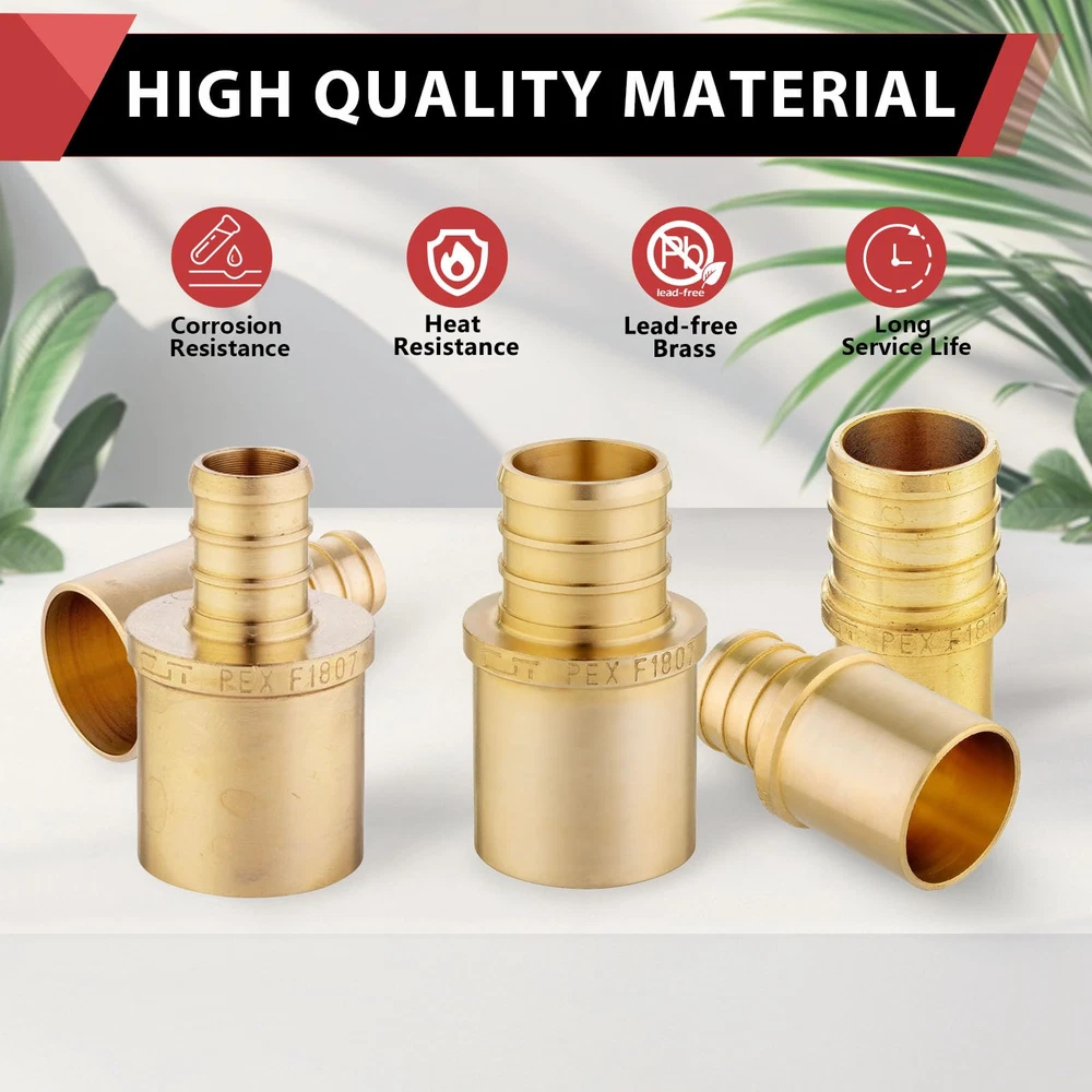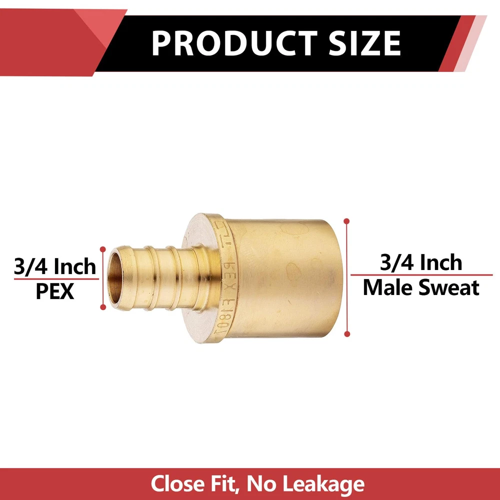 Directly from of the Biggest Pex Systems Manufacturers 10 PCS 3/4" x 3/4" Male Sweat Copper Adapter Certified Fitting Lead Free Brass Suits with all Types and Brands of Pex Tubing: with Stainless Steel Clamp & Copper Crimp Ring Systems ASTM F1807 NSF/ANSI 61 NSF 372 Certified