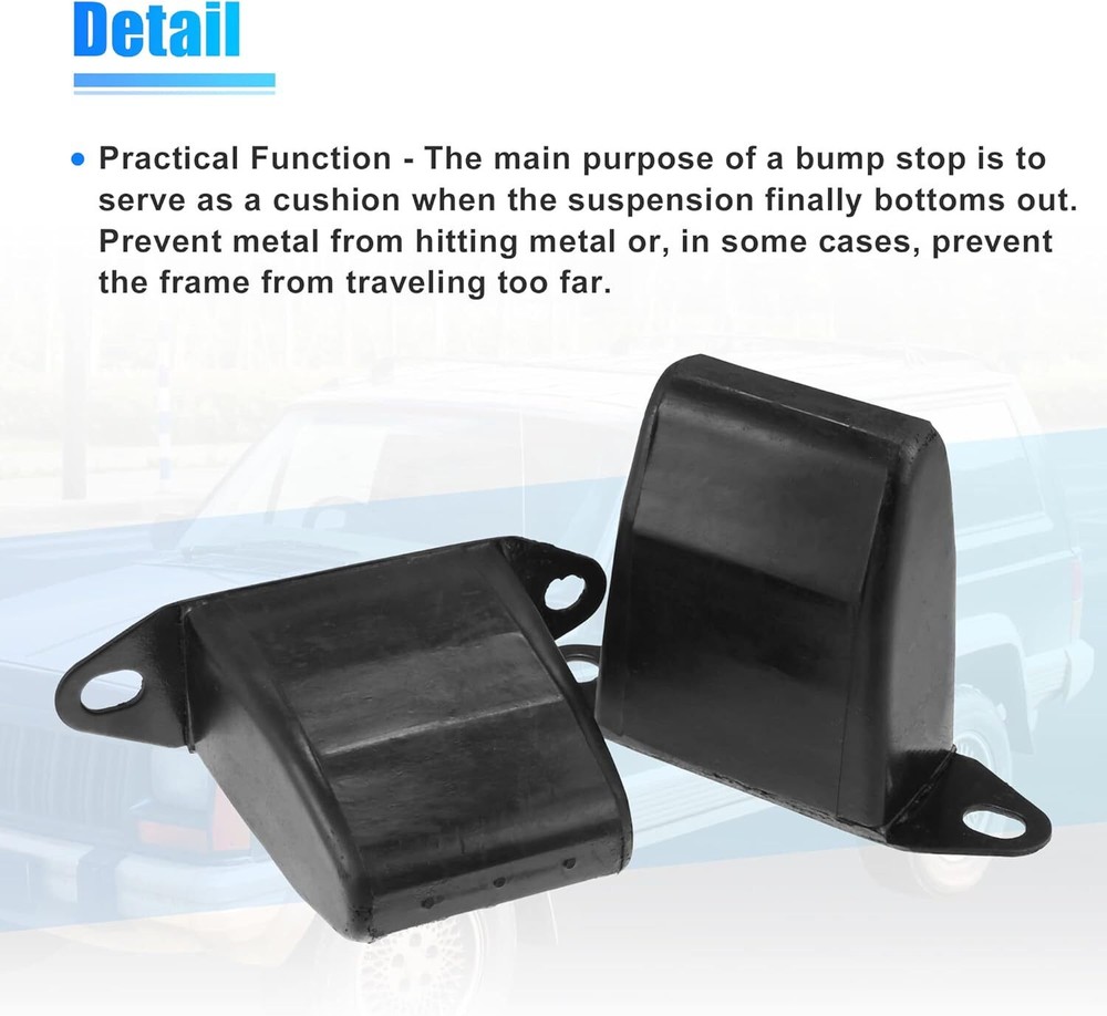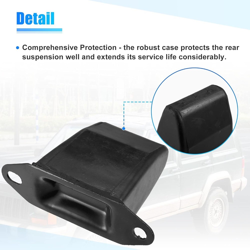 About this item [Part Number] 52002393 [Fitment] for Jeep M-J Comanche 1987-1992; for Jeep XJ Cherokee 1984-2001. [Pros] Sturdy and durable, easy to install. Manufactured according to the original dimensions, fully adapted. [Function] The main purpose of a bump stop is to serve as a cushion when the suspension finally broken. Prevent metal from hitting metal or, in some cases, prevent the frame from traveling too far. [Package] 2x Rear Suspension Bump Stop. Please confirm the fitment table and OE Number before purchasing. This is a non-OEM product, accessory only. OE Number: 52002393 Fitment: for Jeep M-J Comanche 1987-1992 2.1 L for Jeep M-J Comanche 1987-1992 2.5 L for Jeep M-J Comanche 1987 2.8L for Jeep M-J Comanche 1987-1992 4.0L for Jeep XJ Cherokee 1985-1994 2.1L for Jeep XJ Cherokee 1984-2000 2.5 L for Jeep XJ Cherokee 1994-2001 2.5 L for Jeep XJ Cherokee 1984-1986 2.8L for Jeep XJ Cherokee 1987-2001 4.0L Specifications: Type: Rear Suspension Bump Stop Material: Rubber Condition: Brand New Fitment Type: Direct Replacement Package Include: 2x Rear Suspension Bump Stop