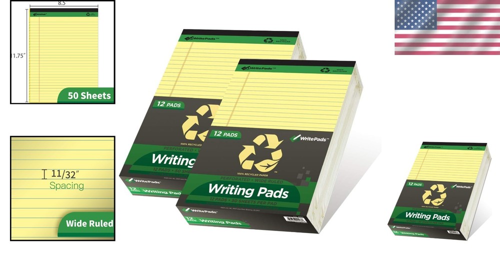Pack of 24 Recycled Wide Ruled Legal Pads - Smooth Double-Sided Writing Sheets ‹ › ‹ › ‹ › ‹ › ‹ › ‹ › ‹ › ‹ › ‹ › ‹ › Pack of 24 Recycled Wide Ruled Legal Pads Your perfect companion for note-taking, sketching, or jotting down ideas, these legal pads blend functionality with eco-consciousness. Product Features: Includes 12 pads with 50 sheets each, for a total of 600 sheets ! Size: 8.5" x 11.75" with 11/32" wide rulings for clear, organized writing. Perforated top part ensures easy removal of sheets with clean tears, avoiding messy ripping. Made from 100% recycled fibers , offering an environmentally friendly option that contributes to sustainability. Experience smooth, no-bleed paper that is thick enough to prevent ink from bleeding through while maintaining a high-quality writing experience. Double-sided pages allow you to utilize both sides before needing to flip to a fresh sheet, maximizing usage. Benefits of Choosing Our Legal Pads: Perfect for students, professionals, and anyone who values a sturdy writing surface. Promotes an eco-aware lifestyle by using recycled materials for a cleaner planet. Ideal for various applications: classroom, office, home, or studio work. Durable construction with clean, perforated edges for the neatness of presentation. Why Choose Our Recycled Legal Pads? In today's fast-paced world, taking notes should be seamless and efficient without sacrificing quality. Our pack of Recycled Wide Ruled Legal Pads not only ensures that you have ample space for your thoughts and ideas, but also stands as a testament to your commitment to sustainability. With each sheet being made from recycled material, you can feel good knowing you're making a positive impact on the environment. Seize the opportunity to elevate your writing experience - order your pack of Recycled Wide Ruled Legal Pads today and embrace quality, functionality, and sustainability! Shipping Free & Fast Shipping - We offer free shipping to most of the USA with a normal delivery time of 3-7 days. However, due to the current situation, additional delivery time (up to 3 weeks) may be required for some items. Alternative Carriers - We may use alternative carriers (e.g. USPS, FedEx, UPS, etc.) to ensure your package arrives safely and on time. Due to the use of multiple carriers, we are unable to provide a tracking number automatically. Handling Time - Orders are processed and shipped within 1-2 business days of receiving cleared payment. Shipping Restrictions - Shipping to Alaska, Hawaii, Puerto Rico, Guam, and other US territories may incur shipping charges or delivery restrictions. Please contact us before ordering, or your order can be refunded/cancelled. State Restrictions - There may be restrictions based on your state of purchase. For example, certain items may not be shipped to California due to state regulations. Contact for Tracking Updates - If you require tracking updates or have any concerns about the delivery of your order, please feel free to contact us, and we will be happy to assist you. Return 30-Day Hassle-Free Returns - We want you to be completely satisfied with your purchase. If you are not, you can return the item within 30 days of receiving it for a full refund or exchange. Easy Return Process - To start a return, simply contact us and we will provide you with a prepaid return shipping label and detailed instructions. Restocking Fee - There are no restocking fees for returns. However, the buyer is responsible for return shipping costs if the return is not due to a seller's error. Refund Processing Time - Refunds will be processed within 5 business days of receiving the returned item in its original condition. Payment We accept all major credit cards, PayPal, and Apple Pay for your convenience. Your payment information is secure and encrypted to ensure a safe and seamless transaction. Please complete your payment within 3 days of purchase to avoid any delays in shipping. Feedback Your feedback is extremely important to us. We strive to provide the best products and customer service possible. If you are satisfied with your purchase, please take a moment to leave us a positive review. If you have any concerns or issues with your order, please contact us before leaving negative feedback. We are committed to resolving any problems and ensuring your satisfaction. Contact Us If you have any questions or concerns, please feel free to reach out to our customer support team. You can contact us through the eBay messaging system. We are available Monday to Friday, 9:00 am to 5:00 pm EST, and we will do our best to respond to your inquiry within 24 hours. Buy it now and enjoy a pleasant shopping experience! UPC: Not Set Model: Not Set MPN: Not Set Brand: Unbranded Sheet Size: 8 1/2 x 11 3/4 in Country/Region of Manufacture: Not Set Personalize: Not Set