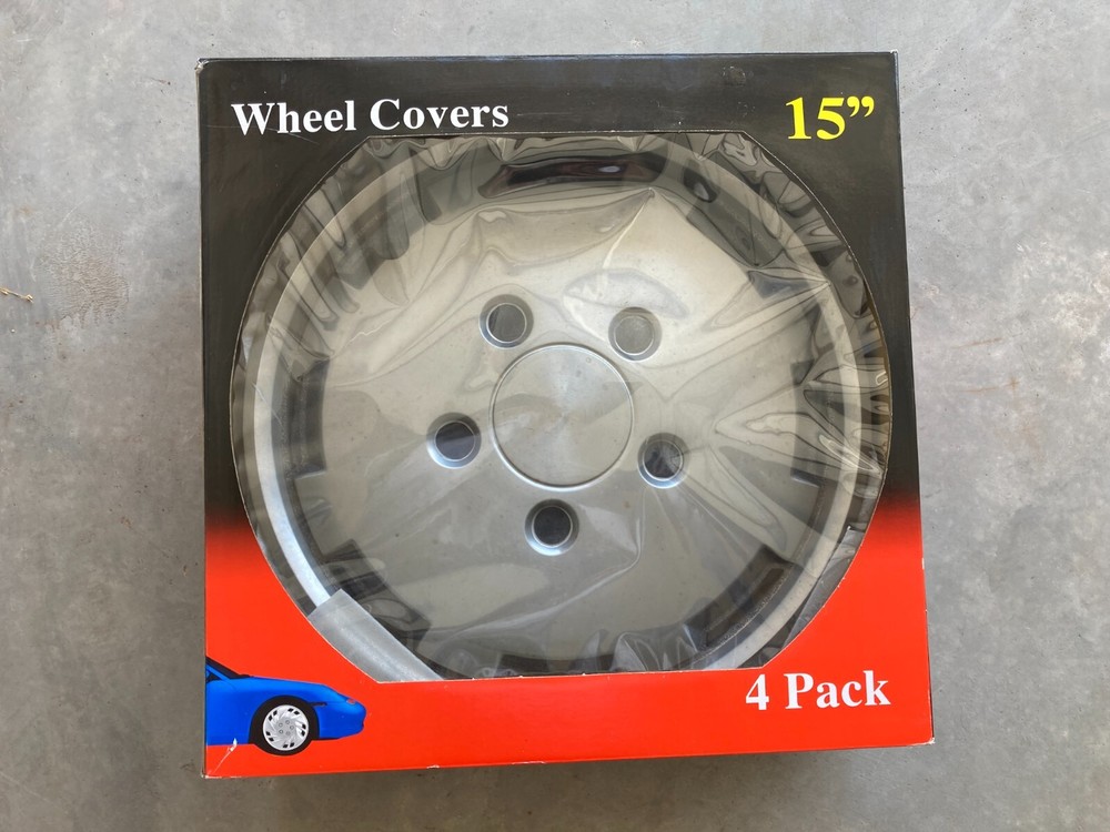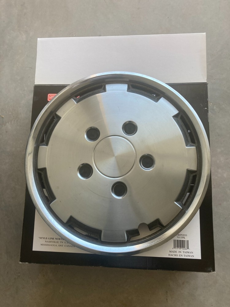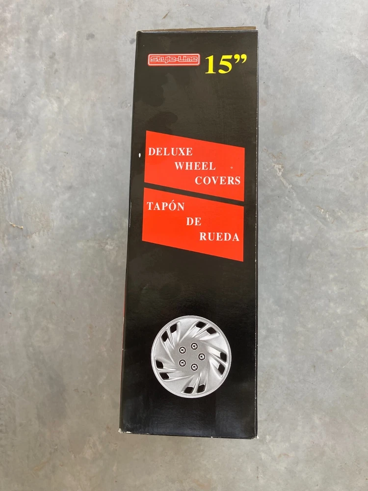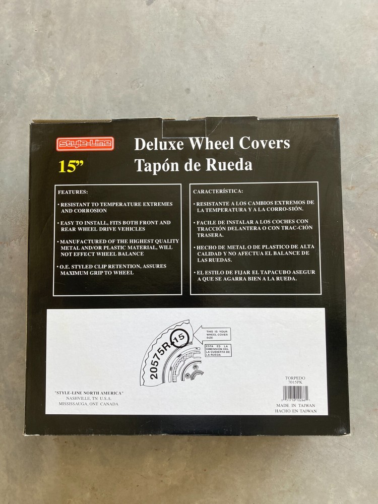 Pack of 3 Deluxe Wheel Covers 15 in- Style-line, Stainless , North America . Rarely Used. One piece ismissing; only 3 are available. These items have beenused previously. They may have some signs of cosmetic wear, but they are fullyoperational and function as intended.