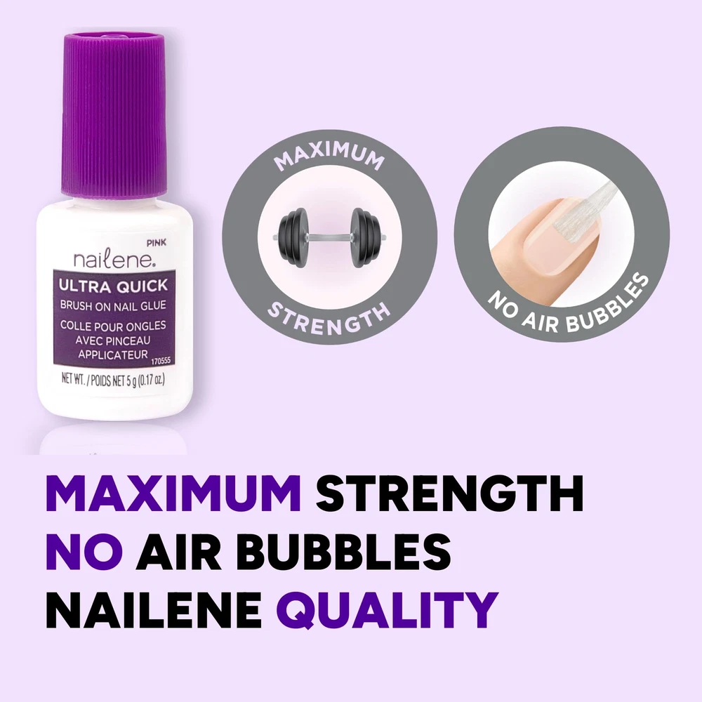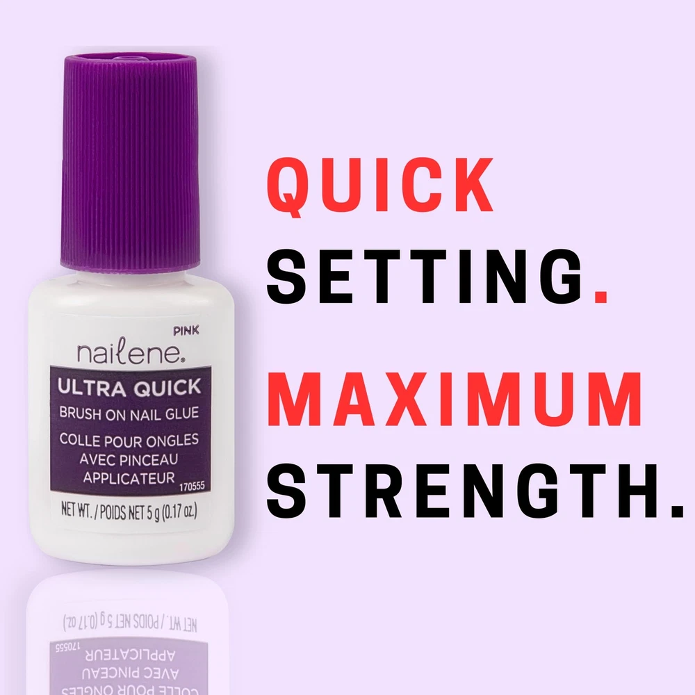 Pack of 3 - Nailene Ultra Quick Brush-On Nail Glue 5 g/0.17 oz Features DURABLE & FAST SETTING NAIL GLUE Nailene Pink Brush On Nail Glue instantly bonds artificial & natural nails with superior holding power. It's ideal for artificial nail application as well as nail repair. NAIL CARE KIT ESSENTIAL This quick dry nail glue brushes on like nail polish for easy, full nail application. It sets in seconds and holds firm for extra-long wear, making it a must-have for your manicure kit or cosmetics bag. EASY APPLICATION For artificial nails, spread a thin layer of glue over nail, press & hold for 5 seconds. To repair a nail, place a drop on the break or tear, hold repair in place with tweezers for 5 seconds, then buff the area smooth. DESIGNED TO IMPRESS Pair this nail adhesive glue with our artificial glue-on nails that are easy to apply and designed to impress. If your beauty routine is about freshness & simplicity, try Nailene. NAILENE QUALITY We make salon-quality artificial nail products that are easy to use & affordable for everyday wear including nail art, nail glue, acrylic kits & more. Fast and Free Shipping You're already purchasing the item. Why pay additional for shipping, especially slow shipping? We get your order shipped out within 1-business day and delivered to your doorstep as quickly as possible. Competitive Pricing With our dynamic pricing model, our prices are always competitive. Our prices are some of the lowest that you will find on the internet. Rest assured that you're getting a good deal when purchasing with us. 30-day Money Back Guarantee We are committed to making sure that you leave this transaction satisfied. If you're unhappy with the product for any reason, you may return it back for your money-back or a replacement within 30 days. No questions asked!