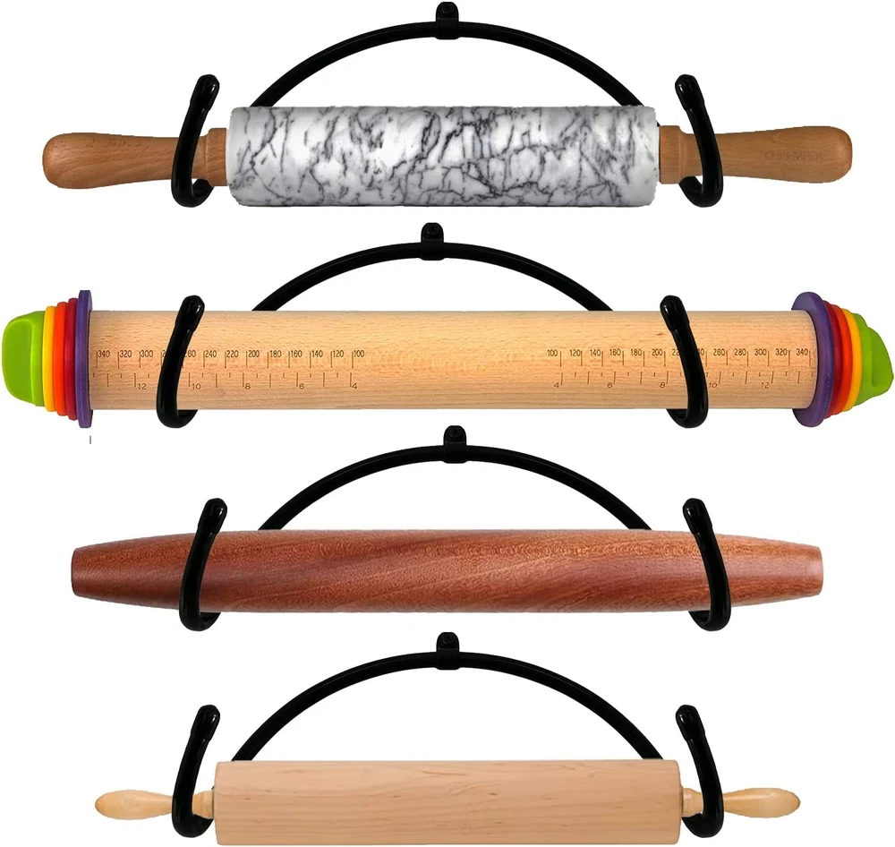 Store New Arrivals Add to Favorite View Feedback Contact Pack of 4 – Rolling Pin Holder Rolling Pin Display Rack Rolling Pin Storage Organizers Rolling Pin Wall Mount Hooks – Home Decor Kitchen Wall Hanging Multi Purpose Bottle Rack - No Rolling Pin Description Room Type Kitchen Additional Features Adjustable, Portable Shelf Weight Capacity 20 Pounds Mounting Type Wall Mount Color black Required Assembly No Material Iron, Metal Material Type Iron, Metal Brand Name AUXPhome Number of Shelves 4 Shelf Type Hanging Shelf Finish Types Black Finish,Iron,Metal Recommended Uses For Product Rolling Pins, Kitchen Utensils Special Feature Adjustable, Portable Style Name Classic Included Components 4 Rolling Pin Holders Quantity : 4/PK. Hold 4 rolling pin . No rolling pin included. Universal - the rack is adjustable to fit your different sizes of rolling pins. Please bend it according to your need. It can also be rolled up when not in use. Does not take up space. Metal with a rustic black finish, No scratches — Rubber protection. The hanger is wrapped with rubber, so please don't worry about the scratches. Sturdy solid iron — A good helper in the family and in life, this rack is suitable for hanging most of the objects under 20 pounds in life. For example: cups, wine bottles, pot lids, towels, etc. Classic design blends with any decorating style Quantity : 4/PK. Hold 4 rolling pin . No rolling pin included. Universal - the rack is adjustable to fit your different sizes of rolling pins. Please bend it according to your need. It can also be rolled up when not in use. Does not take up space. Metal with a rustic black finish, No scratches — Rubber protection. The hanger is wrapped with rubber, so please don't worry about the scratches. Sturdy solid iron — A good helper in the family and in life, this rack is suitable for hanging most of the objects under 20 pounds in life. For example: cups, wine bottles, pot lids, towels, etc. Classic design blends with any decorating style ABOUT US We offer the best prices around on high quality products. Our E-store includes media such as books, movies, music and games while offering electronics, toys, sporting apparel, clothing, tools, general home, garden items and more. SHIPPING We are always working hard to ensure your package arrives as soon as possible. Please understand that some factors like weather, high postal traffic, and the performance of shipping companies are outside of our control. We offer free shipping to the lower 48 states and ship within 2 business days of payment, usually sooner. We do not accept P.O. Boxes. Please provide a physical address. RETURNS We offer a 30-Day Return Policy on items which you are not completely satisfied with. You have the option for a full-refund or an exchange of the item. No returns are available on items shipped outside of the USA. PAYMENT We accept PayPal. CONTACT US This page content is yet to come Please ad us to your favorite seller and visit again later Thank You CUSTOMER SATISFACTION We try our very best to make sure every customer is completely satisfied. If there's a problem, message us! We're happy to help.