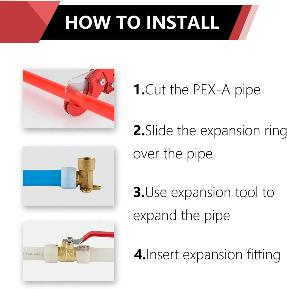 For Use with 1/2" Pex-a Tubing This Efield Product is Compatible with all Types of Brands of Pex A Pipe/Tubing Meet the Standard F1960 Certified to ANSI/NSF-61 and ASSE 1061 Product Standard Pack of 50. Only for Pex A Pipe/Tubing and Fitting Connection. Product Description Efield: Full Range Pex Plumbing Supplier Efield USA Inc, specializing in pipes, brass fittings, ball valves and manifolds etc. With 25 years of experience in production engineering, our products have been recognized by global customers and exported to many countries in the world. Efield: Full Range Pex Plumbing Supplier PEX crimp fittings These fittings are used together with crimp or clamp (cinch) method for making a connection. Push fittings A unique fitting system which is compatible not only with all types of PEX, but also with copper (K, L, M) and CPVC pipes. PEX expansion fittings Compatible only with PEX-A tubing ,can be expanded and are installed using an expander tool and expander sleeves. Copper press fittings Copper press fittings are the perfect on-the-job partner. They help you save time and effort by streamlining your work. Efield: Full Range Pex Plumbing Supplier Brass ball valves & Stop valves Shut-off, balancing, regulating, purging and other type valves for plumbing from industry leading manufacturers. Find your PEX connection of choice with this selection of PEX Valves. With a variety of options in price and involvement, you are sure to find one that is perfect for your job. Out let box Efield outlet boxes house both supply and drainage lines for various plumbing appliances, including washing machines, ice makers, toilets, and dishwashers. Efield: Full Range Pex Plumbing Supplier Pex A Expansion tubing Efield Expansion PEX is cross-linked polyethylene tubing designed for use within potable water piping systems Pex B Crimp tubing Efield PEX pipes, with their excellent corrosion resistance and flexibility toughness, can help you save time by making any piping installation simpler.