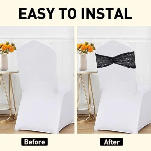 Menu 1. We require immediate payment. 2. We currently accept payment via eBay managed payments only. 3. Once payment is cleared, we will dispatch your shipment within 1-3 business days. Please refer to the "Shipping" tab for more information regarding shipping speed to your destination. Pack of 50 Sequin Chair Sashes Black Chair Bows Bands for Party Wedding Banquets Decor Product description SIZE: 14 inches length with 6 inches width. Can fit almost banquet chairs and folding chair covers, suitable for chair back width: 13 to 14.5 inches. FABRIC: The chair sashes are made of sparkling 3mm round sequin fabric and sturdy, and the sequins are not easy to fall off. The backside is designed in the shape of a cute bow ,which adds a touch of sparkle and glamour to the overall look of the chairs. LOCKED EDGE: The edges of the chair sashes bands are hemmed and stitched with color-matched thread. The stitching is dense and neat ,shiny and eye-catching look. Easy to set up, just stretch over the chair cover, to create a stylish and luxurious appearance. WIDELY USED: Decorative sequin chair sashes add a touch of elegance and sparkle to any event, perfect for Christmas,Thanksgiving, Halloween, festival decor,parties, weddings, banquets, birthday,ceremonies and more! KINDLY NOTE:Due to different monitors, the color of the chair sash itself may vary slightly from the picture. If you have any questions, please feel free to contact us, we are happy to serve you. PLEASE MESSAGE US IF YOU HAVE ANY OTHER QUESTIONS, AND MANY THANKS FOR READING ALL OF THIS. Copyright ©#. All Rights Reserved.