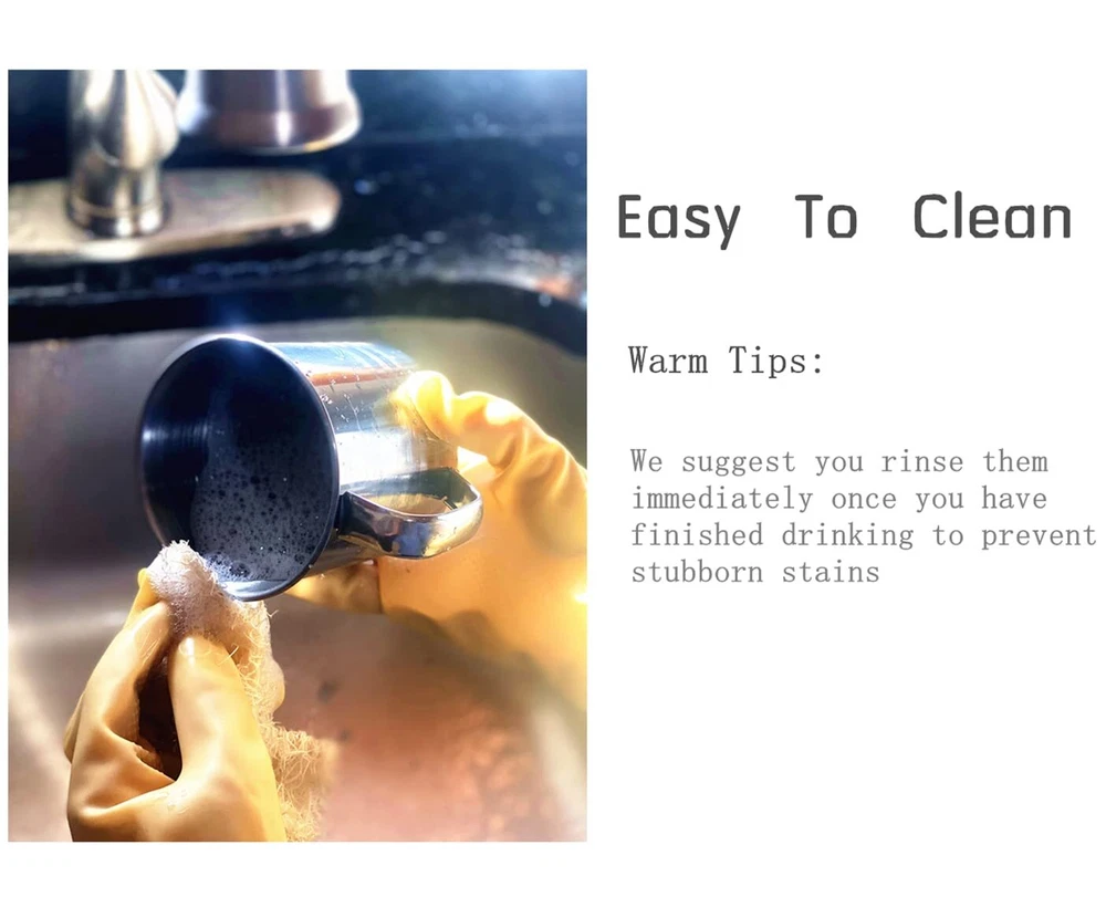 Value 6 Pack-Light Weight Sturdy 12-oz Drinking Cup with Rolled Edge. VALUE 6-PACK: DRINKING CUPS 12 OZ. each LIGHTWEIGHT: rust resistant steel COLD BEVERAGES: like tea, lemonade, orange juice ect. much more refreshing Sturdy yet lightweight cups/mugs ideal for cooking over a fire, collecting water or enjoying a hot or cold beverage. Measurements: top diameter 3.4", height 2.7"