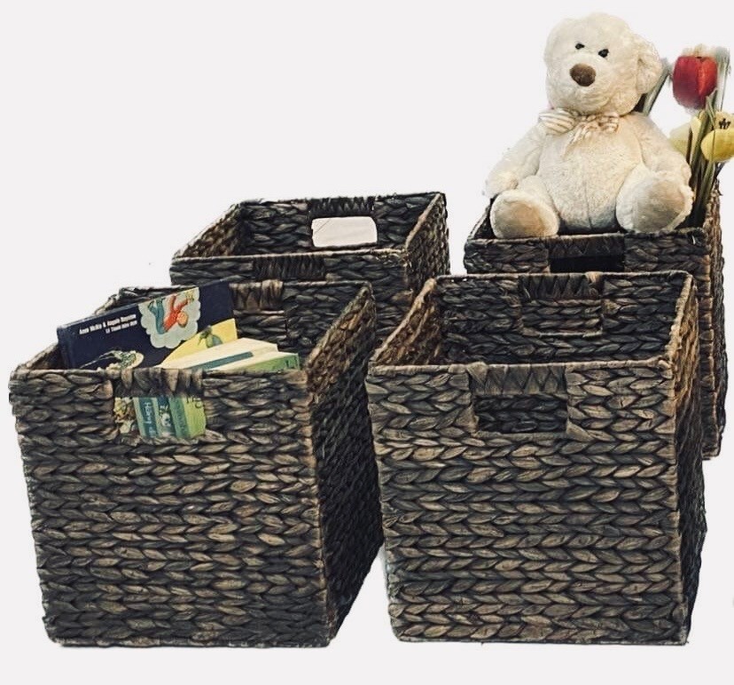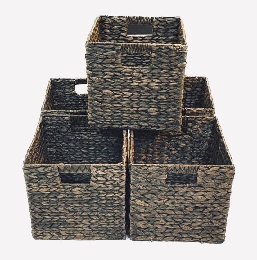 Brown Color Hyacinth Durable Storage Organizer Basket Bin for Cube Furniture Shelf Organization in Bedroom, Bathroom, Office - Hold Clothes, Blankets, Linens, Accessories, 6 Pack, Brown Wash ORGANIZATIONAL - A great set of baskets that allow you to store and organize a wide variety of household, work, or school items including books, magazines, clothes, stocks, .... A great way to get organized! FASHIONABLE DESGIN - Made with natural materials woven into shapes and sizes that help add a modern rustic look to your house or workplace. HIGH QUALITY HANDMADE HIGH QUALITY - Made from natural hyacinth in a woven pattern over a steel frame; Folds flat for compact storage when not in use; EASY CARE: Clean with a damp cloth NATURAL MATERIALS - Water Hyacinth, Eco-friendly,.,, CONVENIENT - Create coordinated organization in drawers, shelves, closets, cabinets and dressers; The cube shape works with many cube organizers on the market TIP - be sure to check the size of your storage cubes to get the right fit; Great for children, tweens, teens and adults; Use these anywhere you want to organize: bedrooms, offices, rec rooms, craft rooms, and more; Great for closets, dresser drawers, linen closets, and dresser tops Material Hyacinth Color Brown Brand Generic Shape Rectangular Room Type Bedroom/ Living Room/ Kitchen ATTRIBUTES Organizational Fashionable Handmade Natural Common Sizes