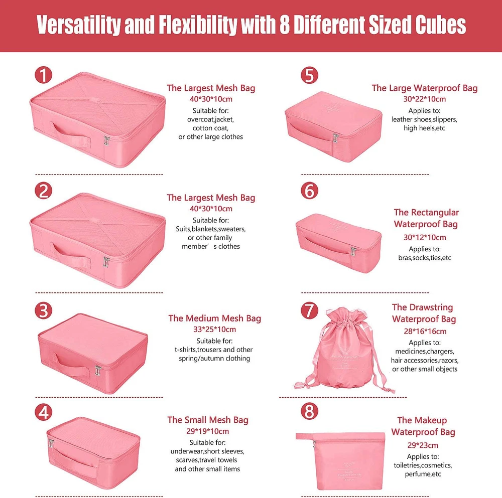 Store New Arrivals Add to Favorite View Feedback Contact Packing Cubes 8 Sets Travel Luggage Organizers Include Waterproof Shoe Storage Bag Convenient Packing Pouches for Traveller (Peach Pink) Description Closure Type Drawstring, Zipper Item Dimensions L x W x H 15.75"L x 11.81"W x 3.94"H Number of Items 8 Color Peach pink Material Polyester Material Type Polyester Number of Sets 8 Shape Rectangular Recommended Uses For Product Clothing, Footwear, Cosmetics, Toilet Additional Features Durable,Waterproof Special Feature Durable,Waterproof Product Dimensions 15.75"L x 11.81"W x 3.94"H Size One_Size Value for money-Thepacking cubes is tailor-made for those who pay attention to quality of product,Superb quality and exquisite workmanship can show from packaging,zipper,texture and other details.Once you receive our travel Luggage Organizers ,touch our product,you will be proud of your choice.BETLLEMORY packing cubes worth its price Thoughtful and Reasonable Design-Cross-shared fixed belt keep your clothes as clean as possible.Visual mesh design allows you to easily find the clothes you want. Double zipper design allows your right and left hand to open quickly. The handle design allows you to carry a bag around at any time Durable and colorful material-The packing cubes use latest Hign-denisity polyester,make packing cubes lighter and more durable.At the same time,we offer 7 different color ,the same product,different set of colours,choose any one you like,make your trip more pleasant More sophisticated suits-When we travel we need carry all kinds of travel supplies,The latest 8 sets design allows all your travel supplies have their own independent storage space.Such as, we have set special shoe bags, cosmetic bags, underwear bags, electronic product bags and so on Quality -.We have prepared exquisite package,The packing cubes will be Perfect ideas friends and families.We promise to provide you with the best shopping experience. Let you feel happy about the convenience brought by this product. If there is any unsatisfactory, by any time Product Description ABOUT US We offer the best prices around on high quality products. Our E-store includes media such as books, movies, music and games while offering electronics, toys, sporting apparel, clothing, tools, general home, garden items and more. SHIPPING We are always working hard to ensure your package arrives as soon as possible. Please understand that some factors like weather, high postal traffic, and the performance of shipping companies are outside of our control. We offer free shipping to the lower 48 states and ship within 2 business days of payment, usually sooner. We do not accept P.O. Boxes. Please provide a physical address. For shipping outside of the continental USA, we only use eBay's Global Shipping Program.The item is shipped to KY and then sent to the rest of the world. International customers are responsible for all duties and taxes. Continue to check out in order to calculate costs for shipping the item to your country. Messages regarding eBay's Global Shipping Program MUST be directed at eBay EXCLUSIVELY. RETURNS We offer a 30-Day Return Policy on items which you are not completely satisfied with. You have the option for a full-refund or an exchange of the item. No returns are available on items shipped outside of the USA. PAYMENT We accept PayPal. CONTACT US This page content is yet to come Please ad us to your favorite seller and visit again later Thank You CUSTOMER SATISFACTION We try our very best to make sure every customer is completely satisfied. If there's a problem, message us! We're happy to help. WE ACCEPT Copyright © 2021 AutoDS. | All Rights Reserved