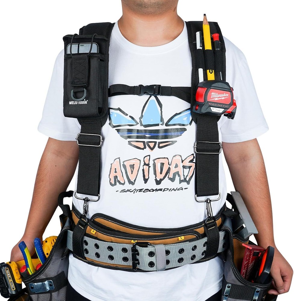 These suspenders are a game-changer! The padding is perfect—no shoulder strain even after hours of work. The breathable mesh keeps me cool, and the strong stitching holds up to heavy tools. Love the 4-point support and detachable phone pouch—super convenient for jobsites. Built tough with high-quality materials and no weak spots. Ideal for construction, farming, or any trade needing hands-free tool access. Worth every penny!