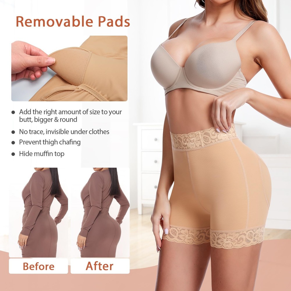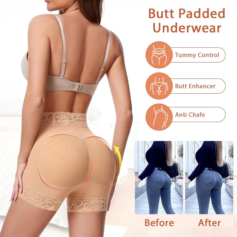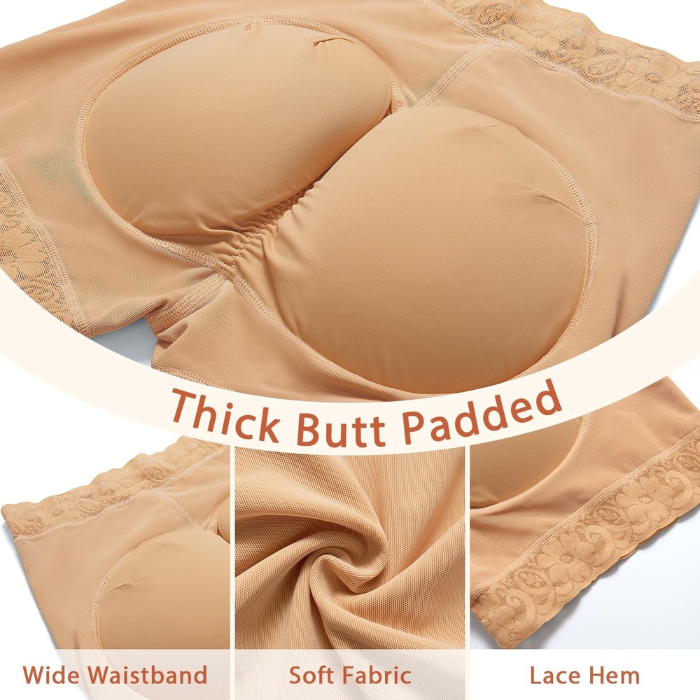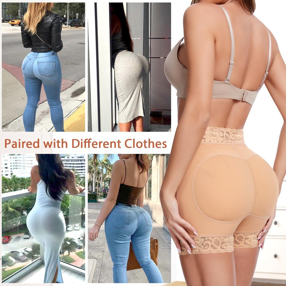 butt pads shapewear, padded underwear for women, butt lifter panties, butt lifting shapewear, butt pads for bigger butt, butt enhancer, shapewear with butt pads, fake butt, butt lifter, hip pads for women shapewear, butt pads for women, butt lifting underwear for women, booty panties, underwear with padded butt Padded Underwear for Women - The butt lifting underwear helps smooth the body and lifts the buttock's natural look instantly. Butt pads contours a plump, sexier and bigger butt. Butt pads shapewear flats the lower abdomen fat and prevents the butt pads from moving and giving you a charming and confident booty figure. Upgrade Buttock Pads for Women - The butt pads are detachable, fit inside individual pockets and stay firmly in place. The edge of hip pads are well stitching for keeping away from tearing apart. The upgrade butt pad are extra large and thick, creating a round & up, more plump buttock Lace Butt Lifting Shapewear Shorts - The boy shorts design prevents thigh inner chafing. With a wide waistband, lace trim and supportive stripes design, padded panties not only give you a beautiful and fashionable look but also avoid rolling and stay in the right place Comfortable Butt Enhancer Underwear - Our padded underwear is made of polyester & spandex, comfortable and breathable. Butt padded underwear for women provides a snug fit to your body that just feels like a second skin. Butt lifter panties is comfy to wear it all day Suitable for All Occasions - The padded panties butt enhancer gives you a subtle lifted look and fills in your slim-fitting slacks, but looks very normal. You can wear it on all occasions such as work, leisure, as well as formal occasions. TIPS: If you're in between sizes, please order one size UP for a more relaxed fit.