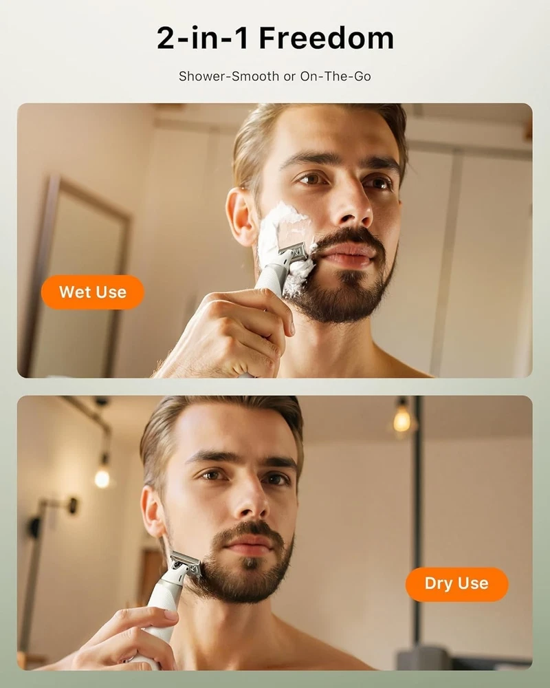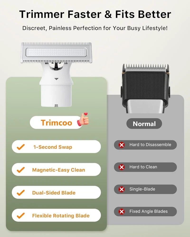 Free eBay listing template designed by dewiso.com Electric Groin & Body Hair Trimmer - Painless Beard Razor for Men, All-in-One Body Groomer, Waterproof Wet/Dry Men's Ball Shaver with Magnetic Head, USB-C Charging, Easy Claen, White(Lite) FREE AND FAST SHIPPING! About this item 【All-in-One Body Trimmer】Shave and Trim with extra skin protection with just one device – Featuring three attachable guards (0mm Skin Protector, 0mm SkinGuard, 3mm Body Comb) makes it fast and easy to trim intimate hair in any direction. Such as beard, legs, underarms, back, chest, and Groin & Ball hair. The water-resistant design allows safe use in the shower, while the ergonomic, non-slip grip ensures control in wet conditions. 【Painless & Smooth Shaving】No Nicks, No Irritation, Just Smooth Perfection! The beard trimmer for men gives you a precise and smooth hair-shaving experience without the discomfort of skin pulling, irritation, injuries, and pain. The sharp, efficient and adjusting magnetic blades glide flawlessly over body curves, contours, and sensitive skin. Plus, goose bumps caused by hair removal will be a past. No more accidental cuts—just silky-smooth results, every time. 【Highly Efficient, USB-C Fast Charging】Equipped with a USB-C cable Our Rechargeable electric razor for men can be charged at home or on the road, perfect for your daily routine and for travel. Our hair trimmer for men fast charging in 30-minutes gets 120-minute runtime.A travel lock helps reduce accidental powering on of the device, so your trimmer is fully juiced when you arrive at your destination. Press and hold the lock button for 5 seconds to engage/ disengage. 【Patented Magnetic Snap Blade】Trimcoo shavers for men feature a world-exclusive Patented Magnetic Snap-On Blade System, engineered for instant removal and easy cleaning. Unlike clunky competitors that require tools or force to disassemble, our blades detach with one gentle pull—simply rinse under water and snap back into place. No more trapped hairs or residue buildup. Your shaving routine just got easier and install Magnetic Blade back effortlessly. 【 Wet/Dry Use Friendly】Trimcoo Waterproof Body Hair Trimmer features a world-first Dual-Environment Grooming System, engineered for seamless transitions between shower and dry use. Make a splash with our waterproof electric groin hair trimmer for men! Enjoy worry-free use of the body hair trimmer in wet or dry conditions, even in the shower or bathtub, for a seamless grooming experience. Trust us, it's a trimmer for men can depend on! 【Hygienic Hair-Free Design】Say Goodbye to Debris Build-Up! Tired of residue accumulation in hard-to-reach areas? Our open magnetic system eliminates hidden hair traps—simply detach, rinse (fully water-resistant!), and air-dry. Skip tedious scrubbing while maintaining grooming hygiene. 【4-Month Replacement for Best Results】For optimal performance and safety, we recommend replacing trimcoo Genuine Magnetic Replacement Blades, Every 6–12 months with regular use (2–3x/week), Every 3–6 months if used daily or for coarse/thick hair. Dull blades can cause tugging and skin irritation—keep your trimmer performing like new ⚠ Avoid using dull blades to prevent skin irritation and uneven trimming. Product We offer a 30-Day Return Policy on items which you are not completely satisfied with. You have the option for a full-refund or an exchange of the item. No returns are available on items shipped outside of the US . Shipping We offer Free Shipping to the US and ship within 2 business days of payment, usually sooner. We use UPS express shipping. That's why your products are usually delivered within 3 days . Contact We try our very best to make sure every customer is completely satisfied. If there's a problem , message us! We're happy to help. 24/7 live chat available.