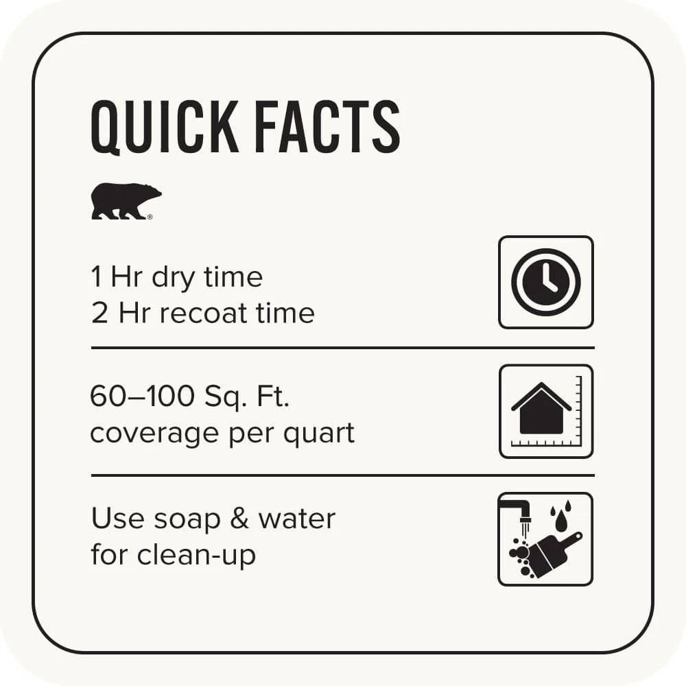 Hexadecimal Value: F9F9F3 Paint/Stain Clean Up: Soap & Water HSL Value: 60.0:33.3:96.5 Paint & Primer in One: Yes Number of coats recommended: 2 Brand: Branded Paint Type: Interior Paint Transparency: Solid gtin13: Does Not Apply RGB Value: 249:249:243 Time before recoating (hours): 2 Base Material: Acrylic MPN: 305004 Tint: Base 1 Container Size: 1 Quart Protection Type: Mildew Resistant Minimum Temperature for Use (F): 50 Country of Origin: United States Paint Key Features: Odor Dry to Touch (min.): 60 UPC: Does Not Apply Approximate Coverage (sq. ft.): 100 Surface Material Use: Brick, Drywall, Masonry, Plaster, Stucco, Vinyl, Wood Sheen: Sheen Color Family: White
