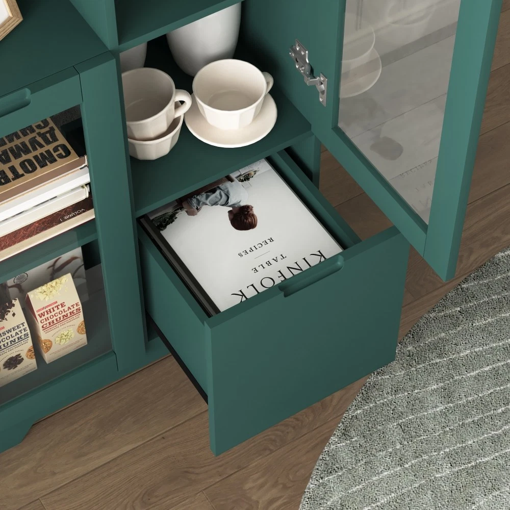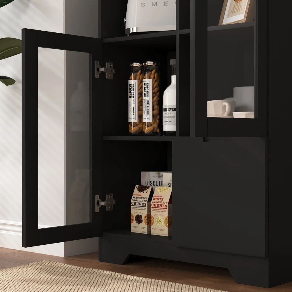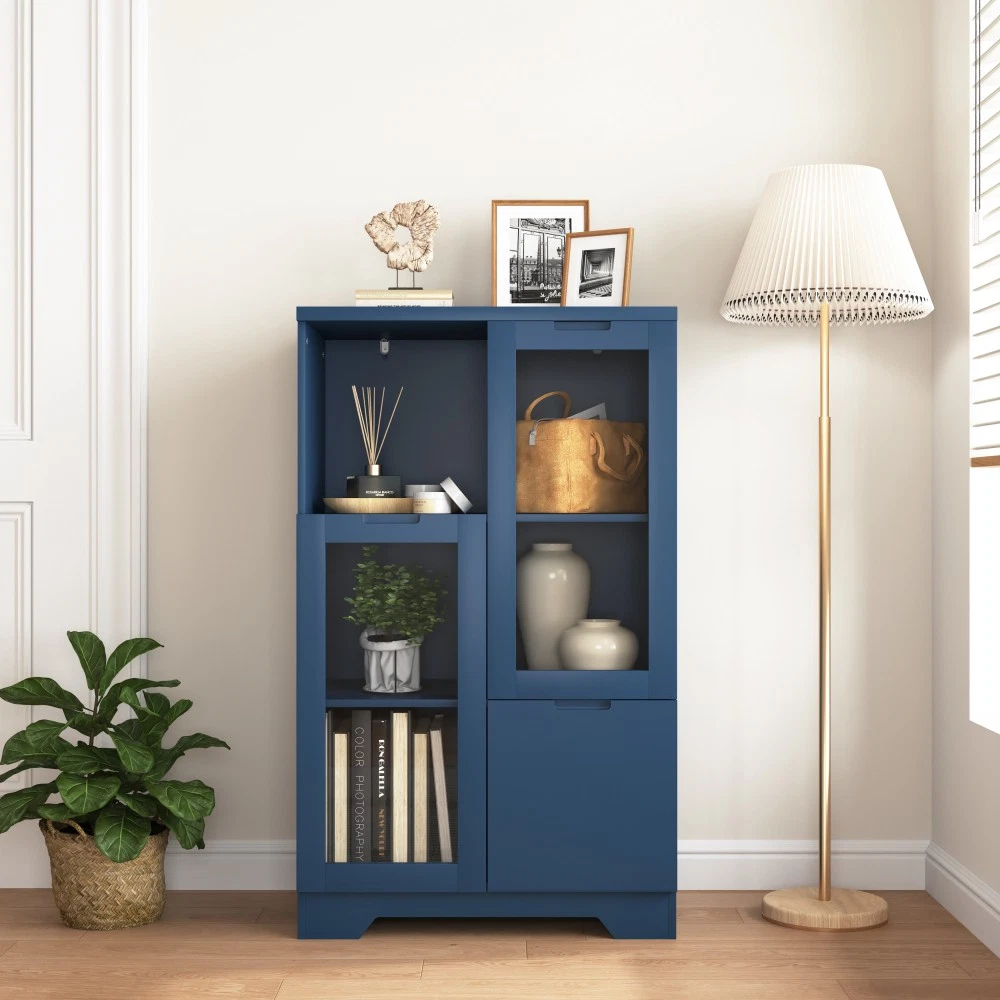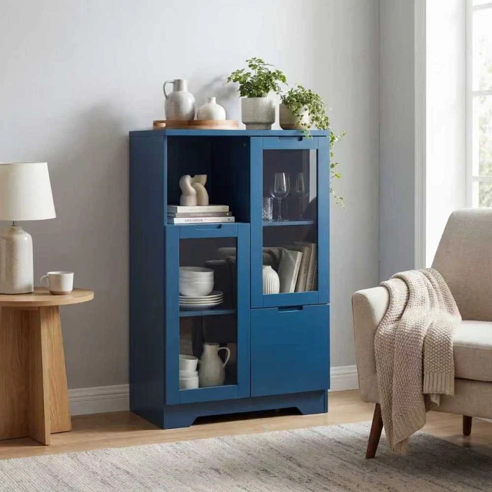 Key Product Information Specification Details Origin China Color White Material High-Quality MDF Assembled Dimensions (L×W×H) 25.60 × 11.80 × 39.40 Inches Assembled Weight 51.80 LBS Package Dimensions (L×W×H) 39.00 × 11.00 × 4.70 Inches Package Weight 57.00 LBS Product Features Multipurpose Functional Storage : This cabinet provides abundant storage solutions to keep your space tidy. It features 2 glass doors that open to two adjustable shelves (for customizable storage of different-sized items), 2 open storage compartments, and a drawer—perfect for storing books, décor, tableware, toiletries, or other daily essentials. Modern White Aesthetic : Designed in a sleek white finish, this cabinet boasts a contemporary style that complements any home décor. The glass-paneled doors add a touch of sophistication, while the handleless design enhances its exquisite, minimalist look. Its unique and classic appearance easily matches various interior styles, from modern to traditional, adding elegance to any room. Solid & Durable Construction : Crafted from high-quality MDF wood with thick, sturdy panels, this cabinet is built to last—stable, durable, and capable of supporting various items and weights without wobbling. The glass cabinet doors are shatter-resistant and break-resistant, ensuring long-term use and safety. Easy to Assemble & Clean : No complicated tools required! A detailed, easy-to-follow assembly instruction is included, allowing you to put the cabinet together quickly and correctly. The smooth white surface is low-maintenance and easy to wipe clean with a damp cloth, keeping it looking fresh for years. After-Sales Guarantee We stand behind our product quality! This storage cabinet comes with a 1-Year Quality Warranty —if you encounter any manufacturing defects or issues within one year of purchase, we will provide a free repair or replacement. Additionally, enjoy a 30-Day Free Return & Exchange Policy : if you are not satisfied with your purchase for any reason, you can return or exchange it free of charge within 30 days (please ensure the product is in its original packaging and condition). Transform your home with this stylish and practical storage cabinet—perfect for adding organization and charm to any room. Order now and enjoy a clutter-free, elegant living space!