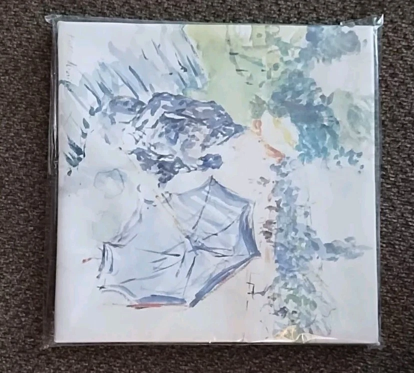 The product is an 8.5 x 8.5 inch landscape art print of a Lady With White Umbrella. It is a floral wall decor piece with a nature theme, created in 2023 in the style of surrealism and fantasy. The print is on paper and unframed, featuring a unique and artistic portrayal of a woman with a white umbrella in a surreal setting.