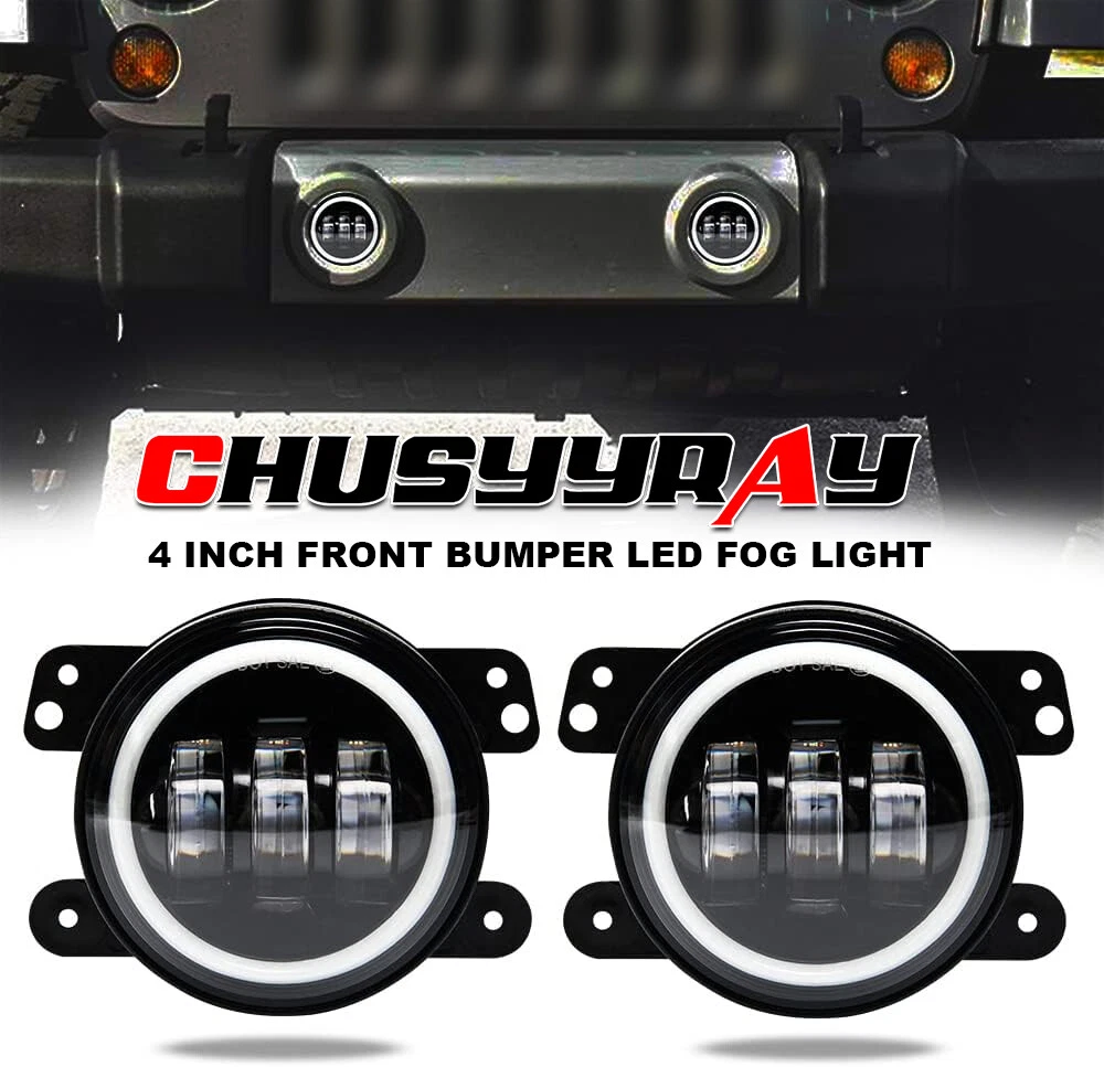 Pair 4" Inch Round LED Fog Lights Halo Angel Eyes DRL For Jeep Wrangler JK LJ JT