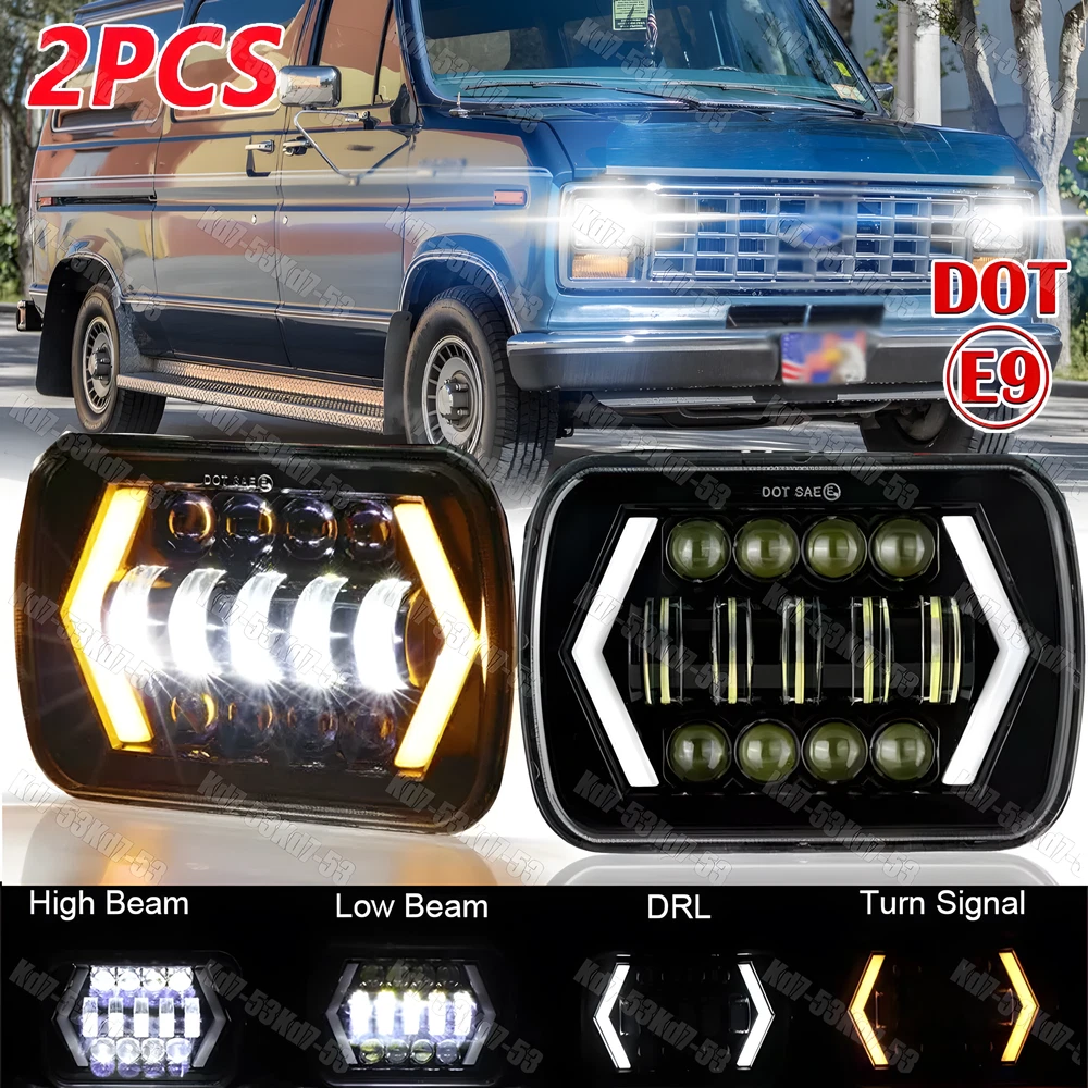 Package included: 2PC 5X7\\'\\' 7x6 DOT LED Headlights 2PC H4 9003 to 3 PIN Adapter Specification: Power: 100W/PC Voltage: 9-32V DC Housing material: Aluminum Alloy Shell + PMMA Lens Color Temperature: 6000K-6500K pure white light Luminous Flux: 6000LM/high beam,4800LM/low beam Waterproof Grade: IP 68 Lifespan: 80,000 hours Working temperature: -40~ 85C Compatibility: Truck, Offroad, 4WD, Tractor, ATV, Boat, UTE Size: 7.87"(Length)x5.63"(Width)x3.14"(Depth) Fitment: For Jeep Models with 5"x7" (7"x6" ) stock headlight. ForJeep Wrangler YJ 1987- 1995 ForJeep Wrangler Cherokee XJ 1984 - 2001 For Jeep Wrangler MJ Comanche 1986 - 1992 For GMC Models with 5"x7" (7"x6" )stock headlight For GMC Savana 3500 ( 1998-2002, 2004, 2007, 2009-2012) For GMC Savana 2500 ( 1998-2001, 2004, 2006, 2008, 2010-2012 ) For GMC Savana 1500 ( 1998-2001, 2003, 2005, 2007, 2009-2012 ) For GMC Safari ( 1998-2002, 2004, 2005 ) For GMC K3500 ( 1997-2000 ) For GMC K2500 Suburban ( 1997-1999 ) For GMC K2500 ( 1997-2000 ) For GMC K1500 Suburban ( 1997-1999 ) For GMC K1500 ( 1997-1999 ) For GMC C2500 Suburban ( 1997-1999 ) For GMC C2500 ( 1997-2000 ) For GMC C1500 Suburban ( 1997-1999 ) For GMC C1500 ( 1997-1999 ) For Ford Models with 5"x7" (7"x6" ) stock headlight For Ford F-550 Super Duty, For Ford F-450 Super Duty, For Ford F-350 Super Duty, For Ford F-250 Super Duty, For Ford E-350 Econoline For Ford E-250 Econoline, For Ford E-150 Club Wagon