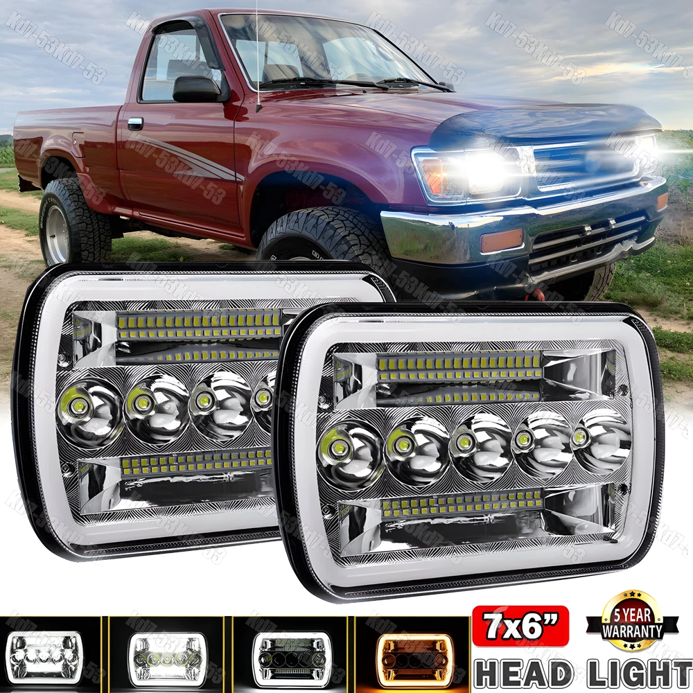 Package included: 2PC 5X7\'\' 100w Black LED Headlights 2PC H4 9003 HB2 adapter harness Features: Super Bright ; DOT, SAE legal light,legal on the road.With high grade LED chip, much brighter and durable than Halogen or HID Headlight.6000lms/PC on high beam and 3000lms/PC on low beam,6000K-6500K pure white light,over 80000 hours above life time. Easy installation-Plug & Play, H4 9003 HB2 Adapter Included - Usually in 20 minutes or less,no need extra decoder anymore! Specifications: Size: 5x7" inch / 7x6" inch LED Color: 6000K-6500K/White Bezel Color: Black Power: 120W; With White DRL Waterproof: IP67 Voltage: DC 9V~30V Luminous Flux: 6000LM/PC high beam, 3000LM/PC low beam Lens Material: Clear PC Lens Material:Diecast aluminum housing Warranty: 5 years Average Life span more than 80,000 hours of usage Plug:Factory H4 plug with hi/lo beam function With EMC Function and DOT,E9 Approved Simple installation:Plug & Play Fitment: Compatitable with headlights: H6014 H6054 H5054 H6054LL 69822 6052 6053 Fit any car or truck that has 5x7/7x6 inch square headlights For Jeep Models with 5"x7"(7"x6" ) stock headlights. For Jeep Wrangler YJ 1987- 1995 For Jeep Cherokee XJ 1984 - 2001 For Jeep Wrangler MJ Comanche 1986 - 1992 For GMC Models with 5"x7"(7"x6" ) stock headlights For GMC Savana 3500 ( 1998-2002, 2004, 2007, 2009-2012) For GMC Savana 2500 ( 1998-2001, 2004, 2006, 2008, 2010-2012 ) For GMC Savana 1500 ( 1998-2001, 2003, 2005, 2007, 2009-2012 ) For GMC Safari ( 1998-2002, 2004, 2005 ) For GMC K3500 ( 1997-2000 ) For GMC K2500 Suburban ( 1997-1999 ) For GMC K2500 ( 1997-2000 ) For GMC K1500 Suburban ( 1997-1999 ) For GMC K1500 ( 1997-1999 ) For GMC C2500 Suburban ( 1997-1999 ) For GMC C2500 ( 1997-2000 ) For GMC C1500 Suburban ( 1997-1999 ) For GMC C1500 ( 1997-1999 )