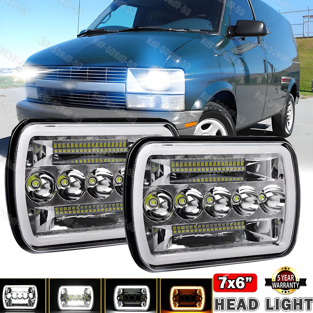Package included: 2PC 5X7\\'\\' 100w Black LED Headlights 2PC H4 9003 HB2 adapter harness Features: Super Bright ; DOT, SAE legal light,legal on the road.With high grade LED chip, much brighter and durable than Halogen or HID Headlight.6000lms on high beam and 3000lmson low beam,6000K-6500K pure white light,over 80000 hours above life time. Easy installation-Plug & Play, H4 9003 HB2Adapter Included - Usually in 20 minutes or less,no need extra decoder anymore! Specifications: Size: 5x7" inch / 7x6" inch LED Color: 6000K-6500K/White Bezel Color: Black Power: 100W; With White DRL Waterproof: IP67 Voltage: DC 9V~32V Luminous Flux: 6000LM high beam, 3000LM low beam Lens Material: Clear PC Lens Material:Diecast aluminum housing Warranty: 3 year Average Life span more than 80,000 hours of usage Plug:Factory H4 plug with hi/lo beam function With EMC Function and DOT,E9 Approved Simple installation:Plug & Play Fitment: Compatitable with headlights: H6014 H6054 H5054 H6054LL 69822 6052 6053 Fit any car or truck that has 5x7/7x6 inch square headlights For Chevy Express Cargo Van 1500 2500 3500