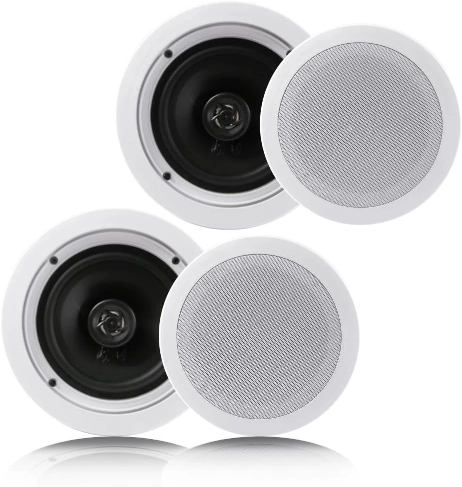 Store New Arrivals Add to Favorite View Feedback Contact Pair 6.5” Flush Mount In-Wall In-Ceiling 2-Way Home Speaker System (PDIC1661RD) White and Wireless Bluetooth Stereo Power Amplifier Description Item model number PDIC1661RD Style Speaker + Receiver Power Source Corded Electric Control Method Remote Is Electric Yes Tweeter Diameter 0.5 Inches Woofer Diameter 6.5 Inches Controller Type Remote Control Unit Count 1.0 Count Speaker Size 6.5 Inches Wireless Communication Technology Bluetooth Material ABS, stain resistant speaker grills Includes MP3 player? No Model Name Pair 6.5’ Flush Mount In-wall In-ceiling 2-Way Home Speaker System Impedance 8 Ohm Recommended Uses For Product Home Theater Specific Uses For Product Home Entertainment Included Components Stain resistant speaker grills, 2 speakers, and nature friendly ABS construction Subwoofer Diameter 6.5 Inches Audio Output Mode Stereo Water Resistance Level Not Water Resistant Connectivity Protocol Bluetooth, USB Connectivity Technology RCA, Bluetooth, USB Audio Driver Type Dynamic Driver Special Feature Stereo pairing;Radio Mounting Type Ceiling Mount,Floor Mount,Wall Mount Color white Surround Sound Channel Configuration 2.0 Compatible Devices Home Theater Speaker Type Tweeter Is Waterproof FALSE Speaker Maximum Output Power 2E+2 Watts Audio Driver Size 6.5 Inches Product Dimensions 2.4"D x 7"W x 6.2"H Easy installation with included cut-out size template and quick connect spring-loaded speaker terminals for the Pyle Pair 6.5” Flush Mount In-wall In-ceiling 2-Way Home Speaker System. 200 watt power stereo amplifier with Bluetooth wireless music streaming from the Pyle Wireless Bluetooth Stereo Power Amplifier. 1/2'' high compliance polymer tweeter and polypropylene cone with rubber edge for full range stereo surround sound reproduction from the Pyle Pair 6.5” Flush Mount In-wall In-ceiling 2-Way Home Speaker System. 5 inputs including RCA audio input, 2 1/4" microphone in, USB, SD card slot and Bluetooth/FM radio antenna from the Pyle Wireless Bluetooth Stereo Power Amplifier. Includes stain resistant speaker grills and nature friendly ABS construction for the Pyle Pair 6.5” Flush Mount In-wall In-ceiling 2-Way Home Speaker System. Pyle Pair 6.5” Flush Mount In-wall In-ceiling 2-Way Home Speaker System Spring Loaded Quick Connections Dual Polypropylene Cone Polymer Tweeter Stereo Sound 200 Watts (PDIC1661RD) White The Pyle In-Wall/Ceiling Speakers deliver stereo sound to any room in your home or office. Each speaker comes equipped with a high compliance polymer tweeter delivering a full, rich sound without cluttering floor space. Speakers are made of nature friendly ABS material and include changeable round and square grills. The system features spring-loaded speaker terminals for quick connection and comes with a cut-out template for easy installation. Mount them in a convenient location on the wall or ceiling for a flush, clean look. Achieve wide-range sound performance and add audio to any room with the Pyle In-Wall/Ceiling Speakers. Features: Includes (2) 6.5-inch Speakers In-Wall / In-Ceiling System Quick Connect Spring-Loaded Speaker Terminals 1/2'' High Compliance Polymer Tweeter Polypropylene Cone with Rubber Edge Cut-Out Size Template for Easy Installation Nature Friendly ABS Construction Perfect for Custom Installations & Applications Includes Stain Resistant Grills Technical Specs: MAX Power Output: 200 Watt Impedance: 16 Ohms Sensitivity: 88 dB Frequency Response: 70Hz-20kHz Total Unit Dimensions (Diameter x Depth): 9.0'' x 3.1'' Cutout Diameter: 7.6'', Cutout Mounting Depth: 2.8'' Single Speaker Weight: 5.5 lbs. Sold as: Pair Weight: 5.36 lbs. SATISFACTION GUARANTEED Your satisfaction is our #1 priority. If this item fails to meet your expectations we will accept it back a full within the first 30 days. We also stand behind this product with a limited 1-Year manufacturer warranty. if the item should show any defect within the first year we will help exchange it for a new one. Pyle Wireless Bluetooth Stereo Power Amplifier - 200W Dual Channel Sound Audio Stereo Receiver w/RCA, USB, SD, MIC in, FM Radio, for Home Computer via RCA - PDA29BU.5 Features: - Compact and Powerful Mini Amp System - Bluetooth Receiver for Wireless Audio Streaming Ability - RCA (L/R) Audio Input - USB/SD/FM playing - Connect & Stream Audio from External Devices - Push-Type Speaker L/R Terminals - Front Panel Rotary Controls - Power ON / OFF Switch - LED Indicator Light - Configurable Treble, Bass and Volume Adjustment - LED Display - With Bluetooth Antenna to Improve Bluetooth Distance - With FM Antenna to Improve FM Sensitivity - MIC Input Bluetooth Wireless Connectivity: - Simple & Hassle-Free Pairing Ability - Works with All of Today’s Latest Devices (Smartphones, Tablets, Laptops, Computers, etc.) - Bluetooth Network Name: ‘PyleUSA’ - Bluetooth Version: 4.2 - Wireless Range: 40’+ ft. What's in the Box: - Stereo Amplifier System - Remote Control Technical Specs: - Power Supply: 100WX2 Max - 10% RMS at 8-Ohm Impedance: 8WX2 - Signal-to-Noise Ratio: 75dB - Input Sensitivity: 200mV - T.H.D.: 0.1% - Signal-to-Noise Ratio: 75dB - Power Cable Length: 4.9’ ft. - Tone Controls: Bass & Treble: +/-10dB (100Hz/10kHz) - Power Fuse: 1 A, 250V Fast-Acting (5 x 20mm) - Battery Operated Remote, Requires (1) x CR-2025 Button Cell Battery, Included - Dimensions (W x H x D): 7'' x 6.2'' x 2.4'' -inches. ABOUT US We offer the best prices around on high quality products. Our E-store includes media such as books, movies, music and games while offering electronics, toys, sporting apparel, clothing, tools, general home, garden items and more. SHIPPING We are always working hard to ensure your package arrives as soon as possible. Please understand that some factors like weather, high postal traffic, and the performance of shipping companies are outside of our control. We offer free shipping to the lower 48 states and ship within 2 business days 