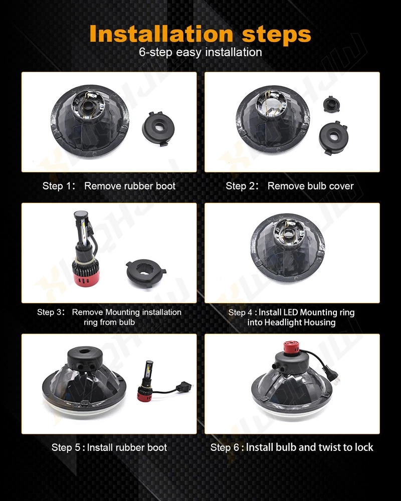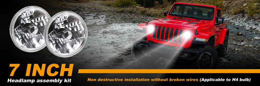 7" Inch Round Diamond Crystal Clear Glass Lens / Headlight Conversion Kit contains everything you need to upgrade your headlights to the newest LED headlight technology while keeping that classic look! -Note: Without mounting bracket, some models may need mounting bracket! -Made with High Quality Glass Lenses - NOT cheap plastic! -Housing has Removable bulb sockets for you to install the new LED bulbs! -Direct Plug & Play design (certain vehicles will require slight modification) -Professional Installation is highly recommended -Warranty 5 years Pair (2 Bulbs Right And Left) 7" Inch Diamond Crystal Clear Semi Sealed Beam Glass Lens Housing Headlights. This Pair Of Headlights Includes 70W Super White LED H4 Light Bulbs. These Headlights Have A Clean Custom Look But Fit Into The Stock Buckets And Plug Into The Stock Wiring Without Modification. These Light Up 500 Percent Brighter And Whiter Than The Standard Stock Sealed Beam Incandescent Headlight Bulbs. These Have The Original 3 Prong Plug Design On The Back So They Will Plug Directly Into The Original Wiring Harness. These Will Fit Any Car Or Truck That Has 2 Round Glass Headlights That Are 7" Inches. H4 LED Bulbs Specifications -Color: 6000K Cool White -Power Consumption: 100W/set -Brightness: 25000lm/set -360 Degree / YZK5 Series CSP Chip Perfect Beam Angle -H4 - Dual Beam Function (You will have HIGH AND LOW!) -500% Brighter than Stock Halogen -Lifespan: 50,000 Hours -Waterproof IP68 -Warranty 5 years Suitable for motorcycles, car,auto, vehicle,motos, ATVs, UTVs,cars, trucks,Scooter Lighting Easy to install,plug&play Contents: - 2x Headlight Housings - 2x H4 LED Bulbs (Hi/Lo Dual Beam) On Dec 23, 2024 at 18:52:34 PST, seller added the following information: