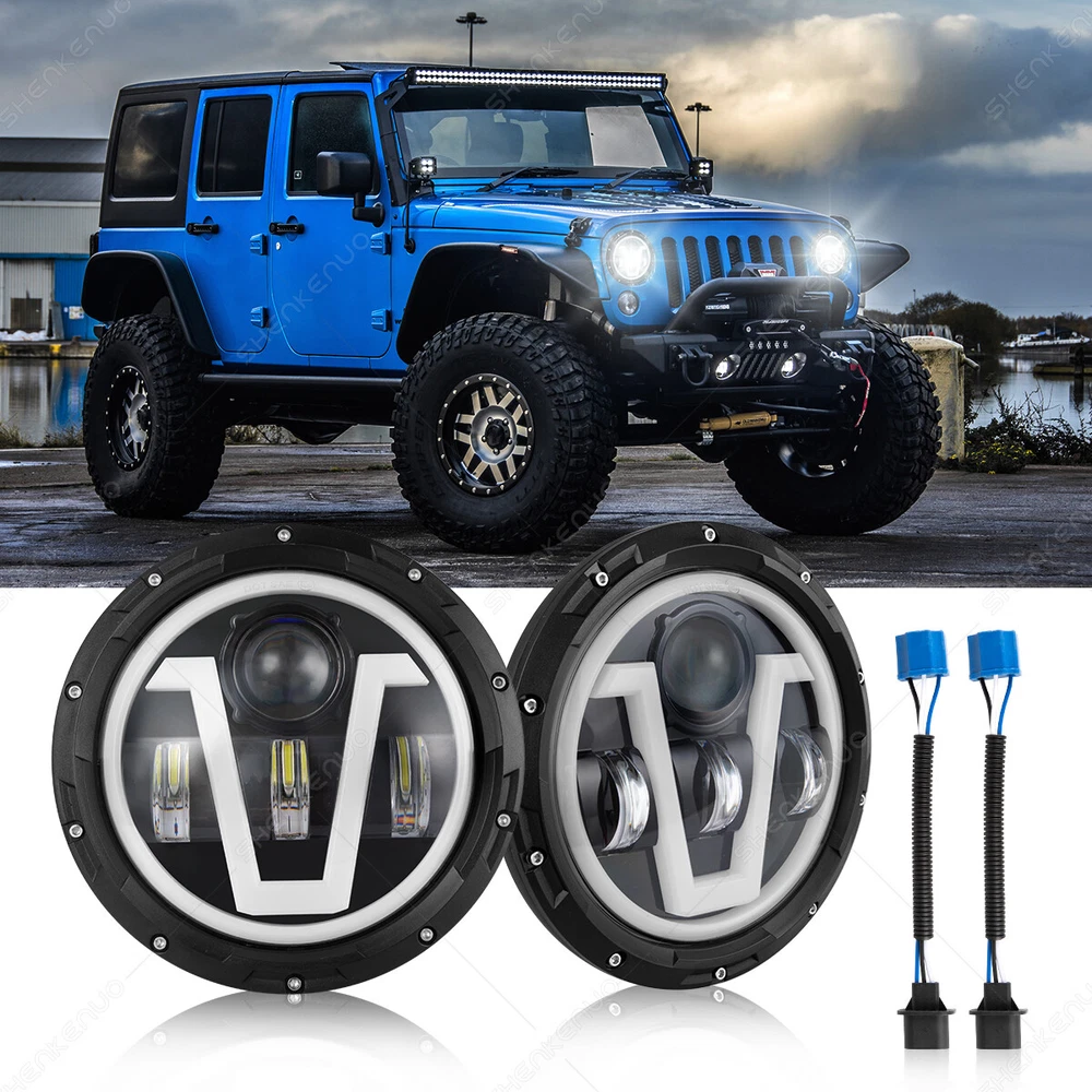 Product Description Package Includes: 2PCS 7-Inch Round V Style LED Headlights 2PCS H4-H13 9008 Adapter Wires (Installation instruction not included) Note: Some models may require a mounting bracket, which is not included! Specifications: Housing Color: Sleek Black Voltage: DC12V Color Temperature: Cool White 6000K-6500K LED Power: 50W each, 100W per set Luminous Output: 10000LM (High Beam), 8000LM (Low Beam) Lighting Functions: High Beam / Low Beam / Daytime Running Light / Turn Signal Life Span: 50,000+ hours for long-lasting performance Energy Efficiency: Save 60% more energy, reducing fuel consumption! Compatibility: Replaces 7-Inch Round H6024 Sealed Beam Housings Waterproof Rating: IP67 for all-weather performance Product Features: Maximum Brightness: Equipped with premium LED chips, these headlights deliver 100% more brightness compared to stock or halogen lights, improving nighttime visibility. Weatherproof Design: DOT Approved, IP67 rated, and equipped with anti-flicker technology for seamless performance without the need for extra decoders. The sealed design keeps moisture and water out, ensuring reliable performance. Hassle-Free Installation: Easy plug-and-play setup saves you time and effort. Built for durability, these headlights boast an impressive lifespan of over 50,000 hours. About the Adapter: A slight flicker may occur due to Jeep Wrangler's voltage instability, not because of the headlights. The flicker is more noticeable with brighter LEDs, unlike dimmer halogen lights. Simply plug in the headlights first. If there is no flicker, the adapter is not needed. Upgrade your vehicle with these cutting-edge 7-inch LED headlights, delivering exceptional brightness, style, and reliability! (Including but not limit the following applications) Application: For Alfa Romeo Spider (1988-1994) For AM General Hummer (1992-2001) For American Motors AMX (1968-1978) For American Motors Gremlin (1970-1978) For American Motors Hornet (1970-1977) For American Motors Javelin (1968-1974) For American Motors Matador (1974-1978) For American Motors Pacer (1975-1980) For Bertone X 1/9 (1984-1989) For Chevy Blazer (1969-1974) For Chevy C10 (1975-1980) For Chevy C10 Pickup (1969-1974) For Chevy C10 Suburban (1969-1980) For Chevy C20 (1975-1980) For Chevy C20 Pickup (1969-1974) For Chevy C20 Suburban (1969-1980) For Chevy C30 (1975-1980) For Chevy C30 Pickup (1969-1974) For Chevy Camaro (1967-1981) For Chevy Chevelle (1971-1973) For Chevy Chevette (1976-1978) For Chevy El Camino (1971-1975) For Chevy G10 G20 G30 (1975-1987) For Chevy K10 K20 K30 K5 Blazer (1969-1980) For Chevy Laguna (1973-1975) For Chevy Lux (1980-1982) For Chevy Malibu (1973-1975) For Chevy Monte Carlo (1970-1975) For Chevy Monza (1975-1980) For Chevy Nova (1963-1978) For Chevy Pickup Truck (1967-1973) For Chevy Truck (1947-1957 and 1962-1972) For Chrysler (1949-1955) For Datsun 240Z 260Z 280Z 280ZX (1970-1978) For DeSoto (1949-1955) For Dodge (1949-1955) For Dodge B100 (1975-1978) For Dodge B100 Van (1971-1974) For Dodge B150 (1984-1987) For Dodge B200 (1975-1978) For Dodge B200 Van (1971-1974) For Dodge B250 (1984-1987) For Dodge B300 (1975-1978) For Dodge B300 Van (1971-1974) For Dodge B350 (1984-1987) For Ford Bronco (1966-1977) For Ford Custom 500 (1971/1976) For Ford E-100 Econoline (1969-1978) For Ford E-100 Econoline Club Wagon (1975-1978) For Ford E-150 Econoline (1969-1978) For Ford E-150 Econoline Club Wagon (1975-1978) For Ford F-100 (1975-1979) For Ford F-100 Pikcup (1969-1974) For Ford F-150 (1975-1979) For Ford F-250 (1975-1979) For Ford F-250 Pickup (1969-1974) For Ford F-350 (1975-1979) For Ford F-350 Pickup (1969-1974) For Ford Falcon Sedan Delivery (1961-1965) For Ford Mustang (1965-1973) For Freightliner Century Class (1996-2011) For Freightliner Coronado (2001-2016) For Honda Civic (1976-1981) For Hummer AM General 1992-2001 For Hummer H1 2002-2006 For Hummer H2 2003-2009 (H2 needs 9007 male to H4 female adapter, package not included) For International Harvester 4200 4300 4400 For Jeep Cj-5 1955-1983 For Jeep CJ-7 (1976-1986) For Jeep CJ-8 Scrambler (1981-1985) For Jeep Wrangler JK 2 Door (2007-2018) For Jeep Wrangler JK 4 Door Unlimited (2007-2018) For Jeep Wrangler LJ Unlimited (2004-2006) For Jeep Wrangler TJ (1997-2006) For Jeep Wrangler TJ Unlimited / LJ (2003-2006) For Kenworth T2000 (1998-2010) (Buyer Note, Our Headlight plug is H4,H4-H13) For Land Rover 90/110 1983 to 1991 (including 2.5N/A, 2.5 Turbo, V8) For Land Rover 90/110 Defender 200 Tdi For Land Rover 90/110 Defender 300 Tdi For Land Rover 90/110 Defender Td5 For Land Rover 90/110 Tdi For Land Rover Defender 90 & 110 For Land Rover Defender 90 1995 For Land Rover Defender 90 1997 For Land Rover Range Rover County Classic SportUtility 4-Door 1995 For Mack DM RM RW RS RL CF For Mazda 808 1976-1977 For Mazda Miata (1990-1997) For Mazda Miata MX5 MX-5 (1990-1997) For Mazda Mizer 1976-1977 For Mazda RX-7 1979-1985 For MG Midget (1969-1979) For Oldsmobile Omega (1974-1979) For Peterbilt 359 (1981-1987) For Peterbilt 379 (1988-2009) For Plymouth (1949-1955) For Plymouth Barracuda (1964-1974) For Plymouth Valiant (1963-1976) For Porsche 944 (1983-1991) For Toyota Corolla (1969-1980) For Toyota LandCruiser (1979-1987) For Toyota Pickup (1979-1981) Motorcycle Fitment: (Fits following motorcycle:) For Any Motorcycle models with 7 inch Round headlight,such as(Not limited): For Dyna SwitchbackFLD: 2014, 2016 For Softail Convertible CVO FLSTSE : 2010-2012 For Softail Cros Bones FLSTSB: 2008-2011 For Softail Deluxe CVO FLSTNSE: 2014-2015 For Softail Deluxe EFI FLSTNI FLSTN: 2005-2017 For Softail FatBoy : 2001-2017 For Softail Heritage Classic Springer Classic EFI FLSTI FLSTC FLSTS: 1991-2017 For Softail Nostalgia FLSTN : 1993-1996 For SoftailSlim FLS S FLSS: 2012-2017 For Touring Electra GlideClassic CVO FLHTCSE EFI FLHTCUIPolice FLHTP: 1994-2017 For Touring Road King Classic EFI FLHRCI Police CA FLHR: 1994-2017 For Touring Street Glide CVO FLHXSE EFI FLHX