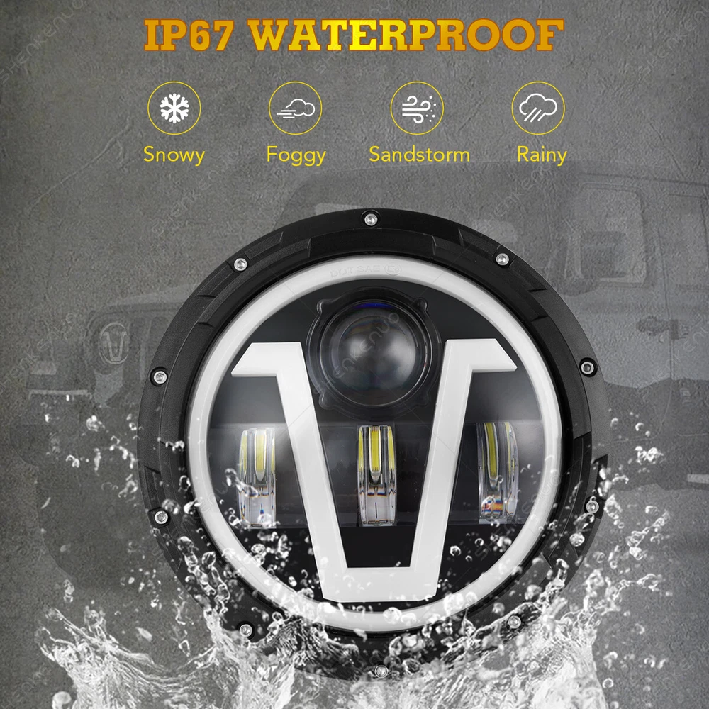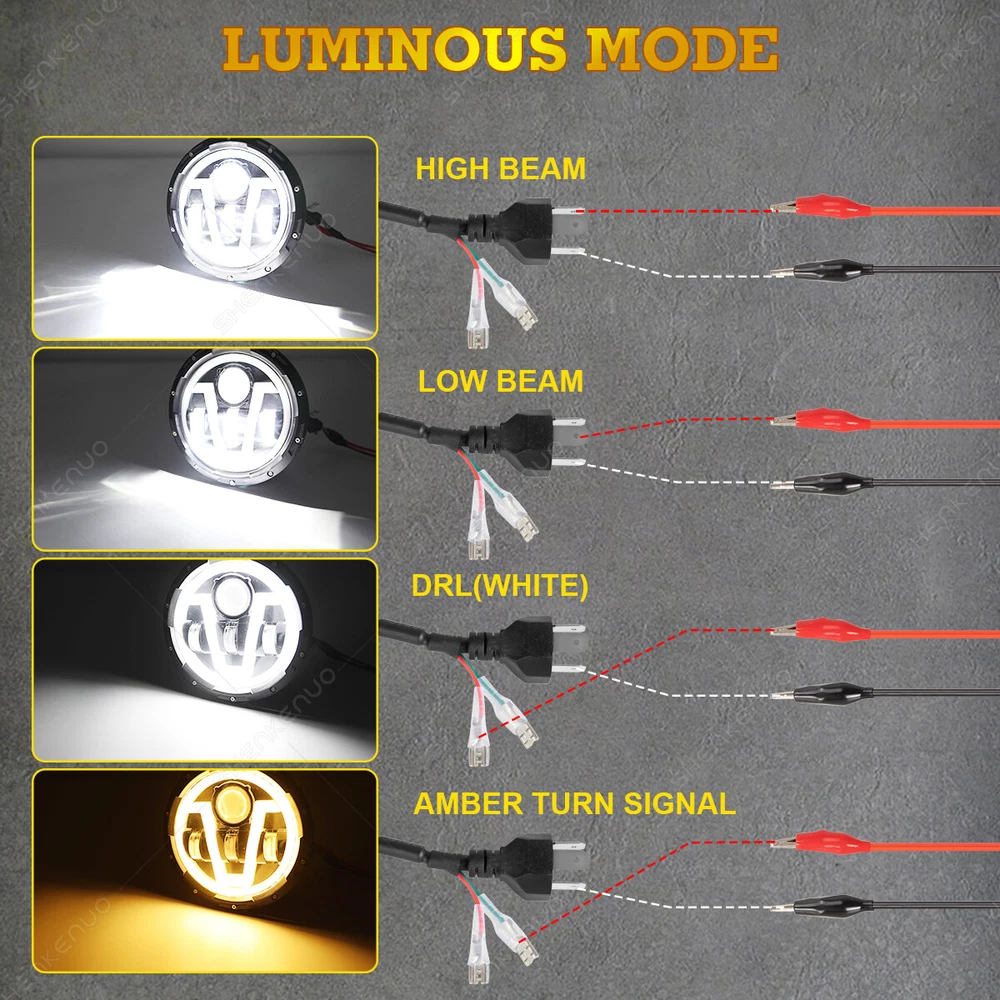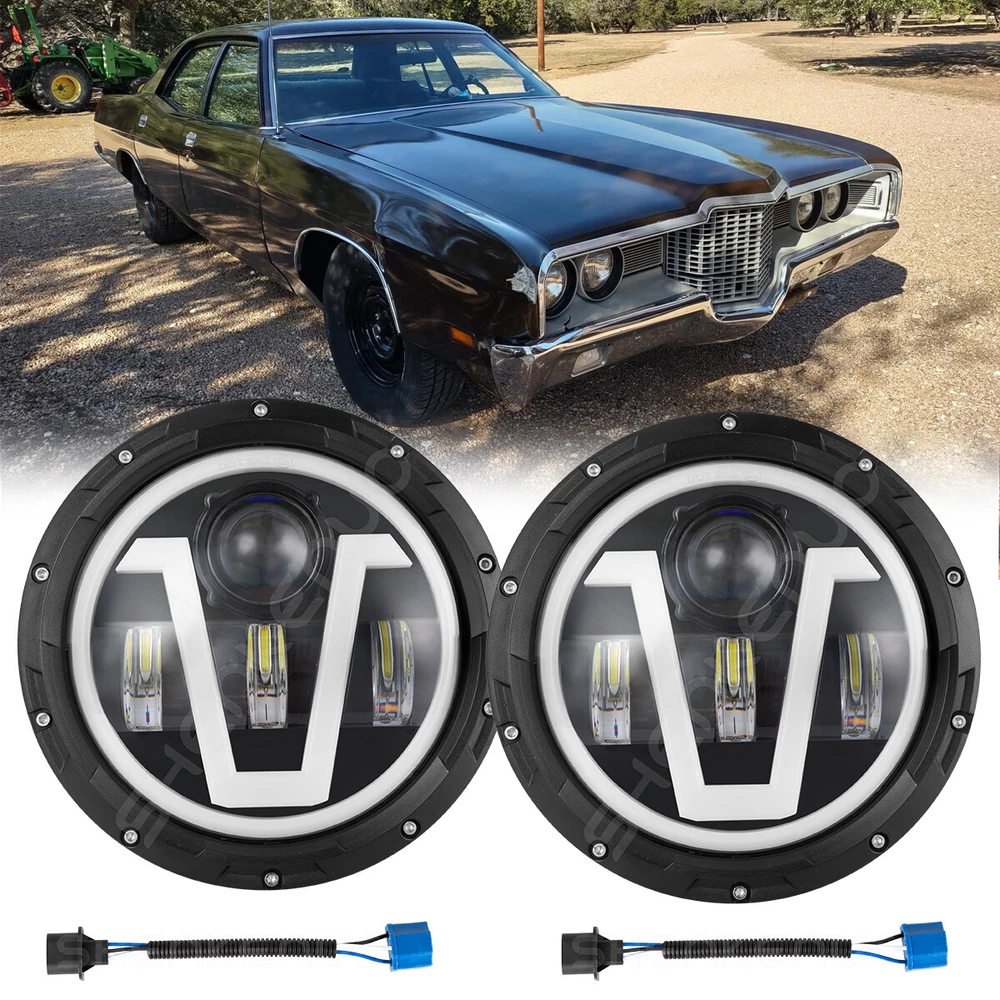 Product Description Package Includes: 2PCS 7-Inch Round V Style LED Headlights 2PCS H4-H13 9008 Adapter Wires (Installation instruction not included) Note: Some models may require a mounting bracket, which is not included! Specifications: Housing Color: Sleek Black Voltage: DC12V Color Temperature: Cool White 6000K-6500K LED Power: 50W each, 100W per set Luminous Output: 10000LM (High Beam), 8000LM (Low Beam) Lighting Functions: High Beam / Low Beam / Daytime Running Light / Turn Signal Life Span: 50,000+ hours for long-lasting performance Energy Efficiency: Save 60% more energy, reducing fuel consumption! Compatibility: Replaces 7-Inch Round H6024 Sealed Beam Housings Waterproof Rating: IP67 for all-weather performance Product Features: Maximum Brightness: Equipped with premium LED chips, these headlights deliver 100% more brightness compared to stock or halogen lights, improving nighttime visibility. Weatherproof Design: DOT Approved, IP67 rated, and equipped with anti-flicker technology for seamless performance without the need for extra decoders. The sealed design keeps moisture and water out, ensuring reliable performance. Hassle-Free Installation: Easy plug-and-play setup saves you time and effort. Built for durability, these headlights boast an impressive lifespan of over 50,000 hours. About the Adapter: A slight flicker may occur due to Jeep Wrangler's voltage instability, not because of the headlights. The flicker is more noticeable with brighter LEDs, unlike dimmer halogen lights. Simply plug in the headlights first. If there is no flicker, the adapter is not needed. Upgrade your vehicle with these cutting-edge 7-inch LED headlights, delivering exceptional brightness, style, and reliability! (Including but not limit the following applications) Application: For Alfa Romeo Spider (1988-1994) For AM General Hummer (1992-2001) For American Motors AMX (1968-1978) For American Motors Gremlin (1970-1978) For American Motors Hornet (1970-1977) For American Motors Javelin (1968-1974) For American Motors Matador (1974-1978) For American Motors Pacer (1975-1980) For Bertone X 1/9 (1984-1989) For Chevy Blazer (1969-1974) For Chevy C10 (1975-1980) For Chevy C10 Pickup (1969-1974) For Chevy C10 Suburban (1969-1980) For Chevy C20 (1975-1980) For Chevy C20 Pickup (1969-1974) For Chevy C20 Suburban (1969-1980) For Chevy C30 (1975-1980) For Chevy C30 Pickup (1969-1974) For Chevy Camaro (1967-1981) For Chevy Chevelle (1971-1973) For Chevy Chevette (1976-1978) For Chevy El Camino (1971-1975) For Chevy G10 G20 G30 (1975-1987) For Chevy K10 K20 K30 K5 Blazer (1969-1980) For Chevy Laguna (1973-1975) For Chevy Lux (1980-1982) For Chevy Malibu (1973-1975) For Chevy Monte Carlo (1970-1975) For Chevy Monza (1975-1980) For Chevy Nova (1963-1978) For Chevy Pickup Truck (1967-1973) For Chevy Truck (1947-1957 and 1962-1972) For Chrysler (1949-1955) For Datsun 240Z 260Z 280Z 280ZX (1970-1978) For DeSoto (1949-1955) For Dodge (1949-1955) For Dodge B100 (1975-1978) For Dodge B100 Van (1971-1974) For Dodge B150 (1984-1987) For Dodge B200 (1975-1978) For Dodge B200 Van (1971-1974) For Dodge B250 (1984-1987) For Dodge B300 (1975-1978) For Dodge B300 Van (1971-1974) For Dodge B350 (1984-1987) For Ford Bronco (1966-1977) For Ford Custom 500 (1971/1976) For Ford E-100 Econoline (1969-1978) For Ford E-100 Econoline Club Wagon (1975-1978) For Ford E-150 Econoline (1969-1978) For Ford E-150 Econoline Club Wagon (1975-1978) For Ford F-100 (1975-1979) For Ford F-100 Pikcup (1969-1974) For Ford F-150 (1975-1979) For Ford F-250 (1975-1979) For Ford F-250 Pickup (1969-1974) For Ford F-350 (1975-1979) For Ford F-350 Pickup (1969-1974) For Ford Falcon Sedan Delivery (1961-1965) For Ford Mustang (1965-1973) For Freightliner Century Class (1996-2011) For Freightliner Coronado (2001-2016) For Honda Civic (1976-1981) For Hummer AM General 1992-2001 For Hummer H1 2002-2006 For Hummer H2 2003-2009 (H2 needs 9007 male to H4 female adapter, package not included) For International Harvester 4200 4300 4400 For Jeep Cj-5 1955-1983 For Jeep CJ-7 (1976-1986) For Jeep CJ-8 Scrambler (1981-1985) For Jeep Wrangler JK 2 Door (2007-2018) For Jeep Wrangler JK 4 Door Unlimited (2007-2018) For Jeep Wrangler LJ Unlimited (2004-2006) For Jeep Wrangler TJ (1997-2006) For Jeep Wrangler TJ Unlimited / LJ (2003-2006) For Kenworth T2000 (1998-2010) (Buyer Note, Our Headlight plug is H4,H4-H13) For Land Rover 90/110 1983 to 1991 (including 2.5N/A, 2.5 Turbo, V8) For Land Rover 90/110 Defender 200 Tdi For Land Rover 90/110 Defender 300 Tdi For Land Rover 90/110 Defender Td5 For Land Rover 90/110 Tdi For Land Rover Defender 90 & 110 For Land Rover Defender 90 1995 For Land Rover Defender 90 1997 For Land Rover Range Rover County Classic SportUtility 4-Door 1995 For Mack DM RM RW RS RL CF For Mazda 808 1976-1977 For Mazda Miata (1990-1997) For Mazda Miata MX5 MX-5 (1990-1997) For Mazda Mizer 1976-1977 For Mazda RX-7 1979-1985 For MG Midget (1969-1979) For Oldsmobile Omega (1974-1979) For Peterbilt 359 (1981-1987) For Peterbilt 379 (1988-2009) For Plymouth (1949-1955) For Plymouth Barracuda (1964-1974) For Plymouth Valiant (1963-1976) For Porsche 944 (1983-1991) For Toyota Corolla (1969-1980) For Toyota LandCruiser (1979-1987) For Toyota Pickup (1979-1981) Motorcycle Fitment: (Fits following motorcycle:) For Any Motorcycle models with 7 inch Round headlight,such as(Not limited): For Dyna SwitchbackFLD: 2014, 2016 For Softail Convertible CVO FLSTSE : 2010-2012 For Softail Cros Bones FLSTSB: 2008-2011 For Softail Deluxe CVO FLSTNSE: 2014-2015 For Softail Deluxe EFI FLSTNI FLSTN: 2005-2017 For Softail FatBoy : 2001-2017 For Softail Heritage Classic Springer Classic EFI FLSTI FLSTC FLSTS: 1991-2017 For Softail Nostalgia FLSTN : 1993-1996 For SoftailSlim FLS S FLSS: 2012-2017 For Touring Electra GlideClassic CVO FLHTCSE EFI FLHTCUIPolice FLHTP: 1994-2017 For Touring Road King Classic EFI FLHRCI Police CA FLHR: 1994-2017 For Touring Street Glide CVO FLHXSE EFI FLHX